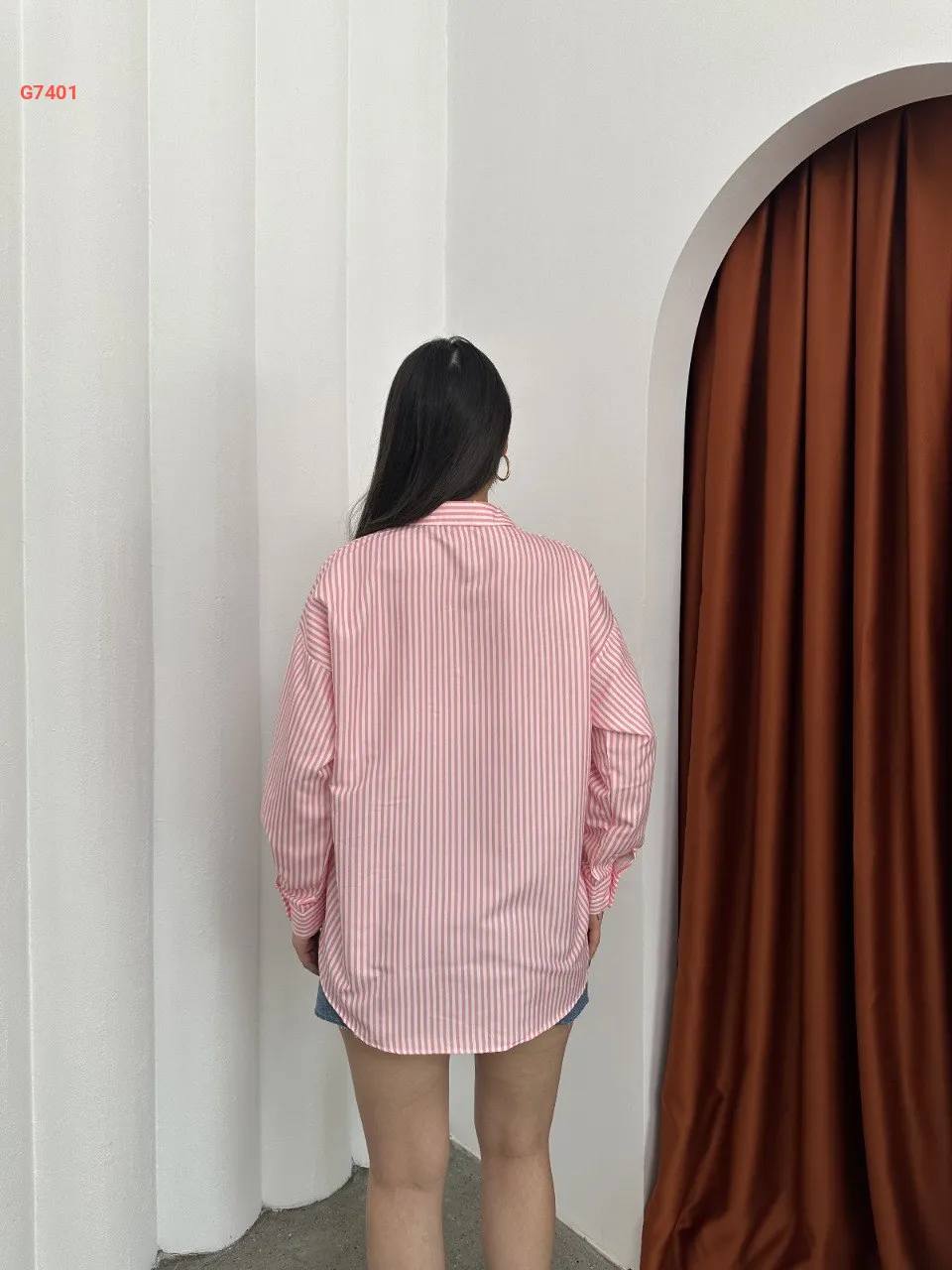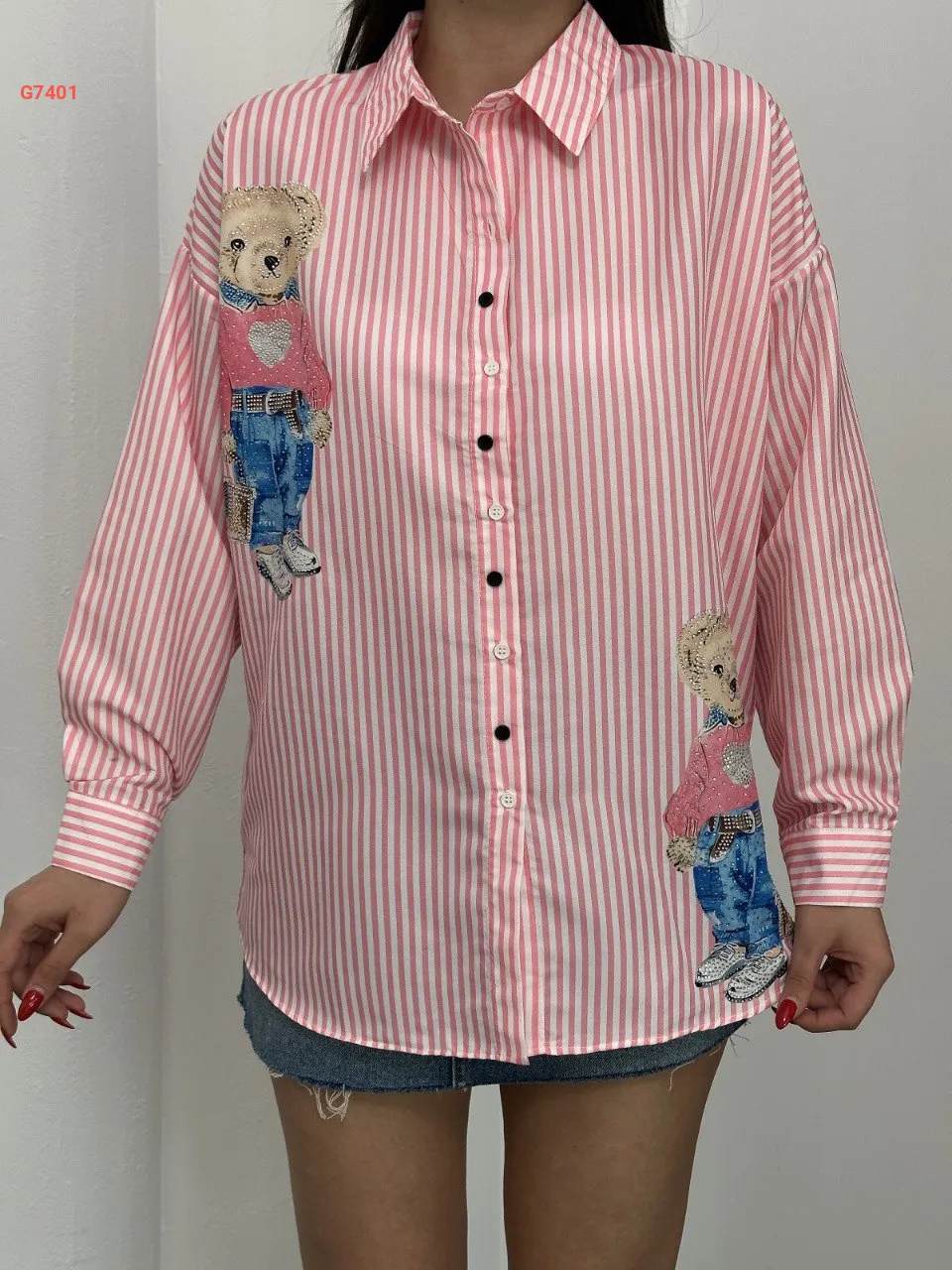 قميص مقلم مع تفاصيل مطبعة
