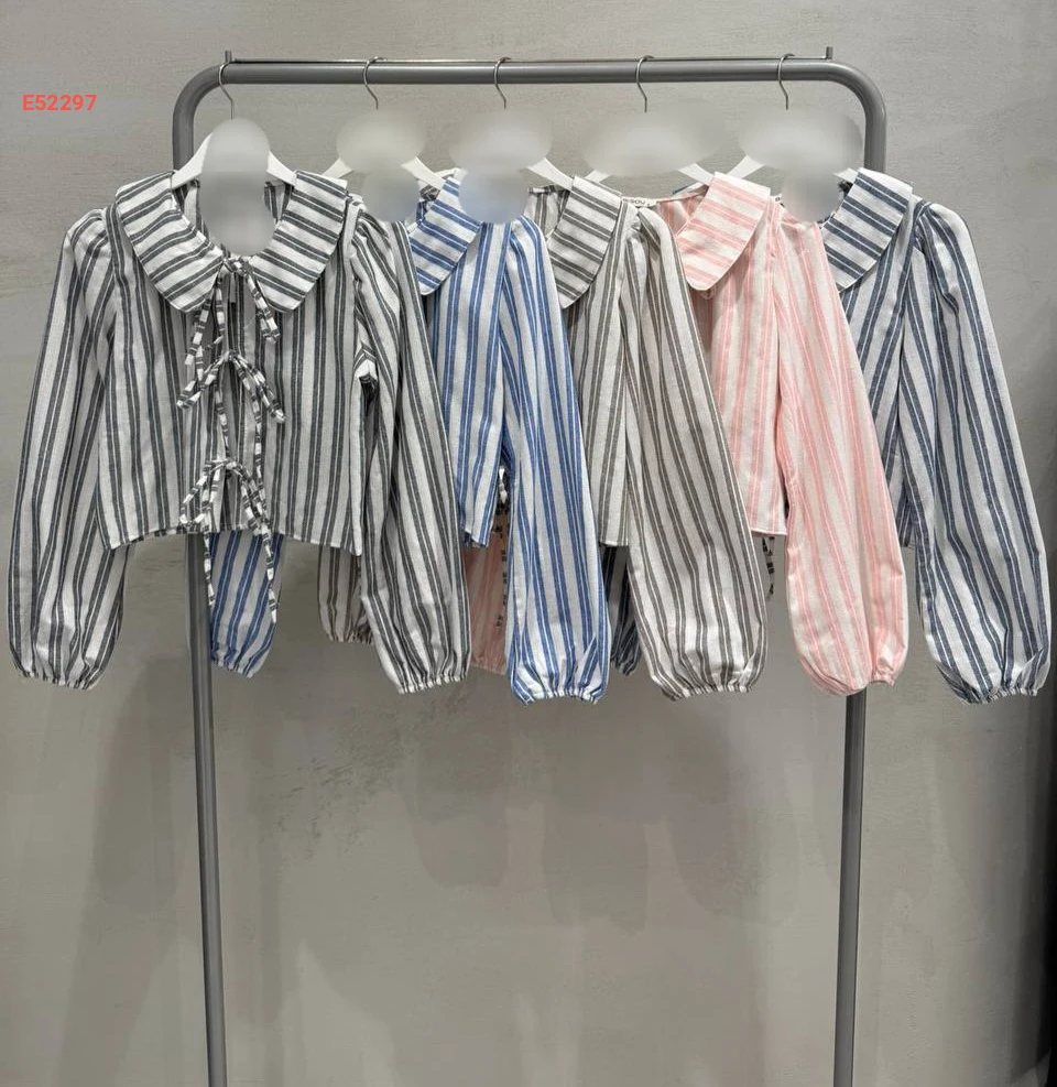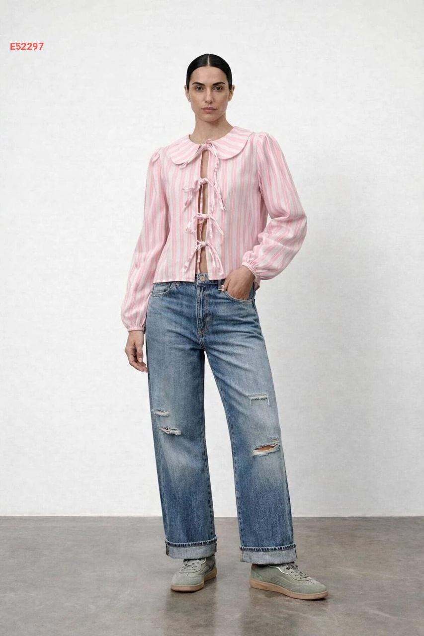 قميص مقلم بربطات وأكمام بالونية