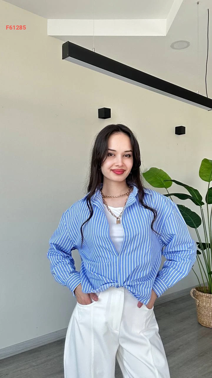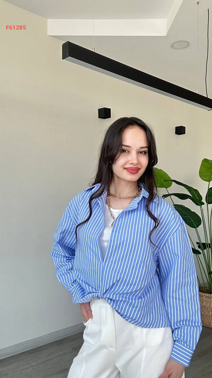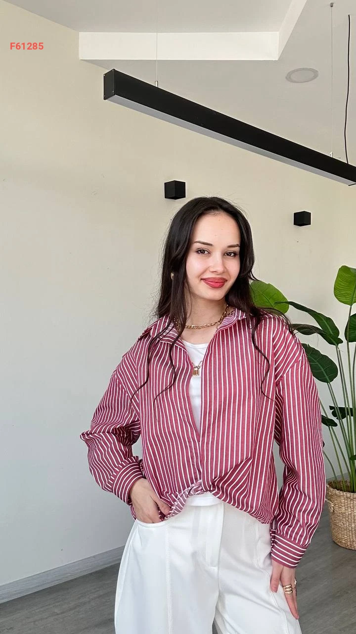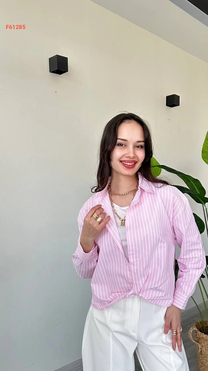 قميص مقلم بلا أزرار