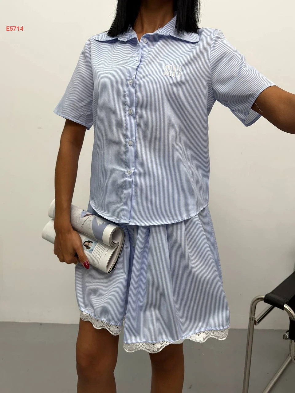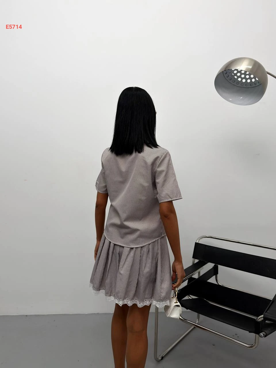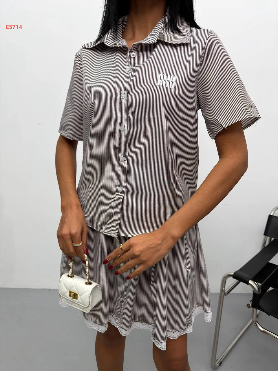 طقم تنورة قصير مقلم ماركة