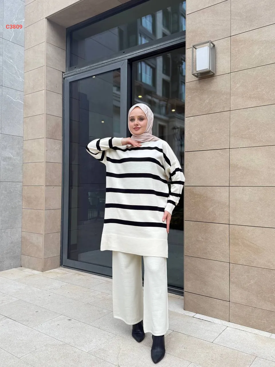 طقم بنطال تريكو وتونيك مخطط