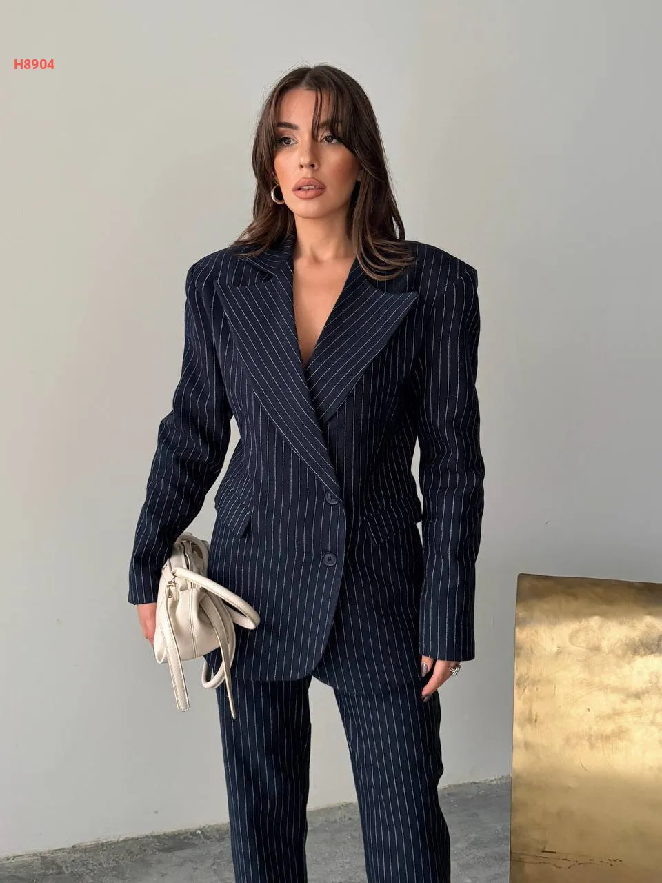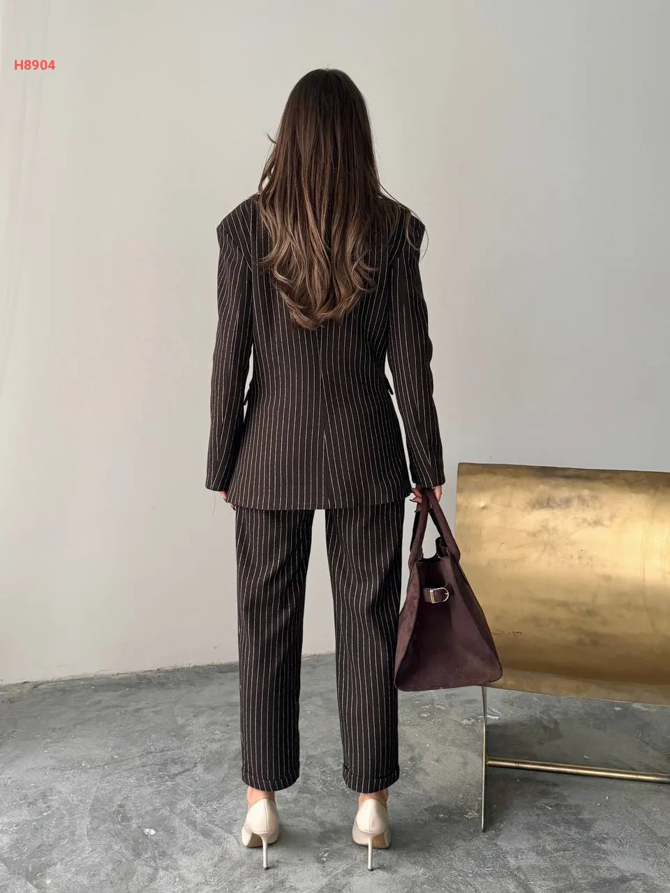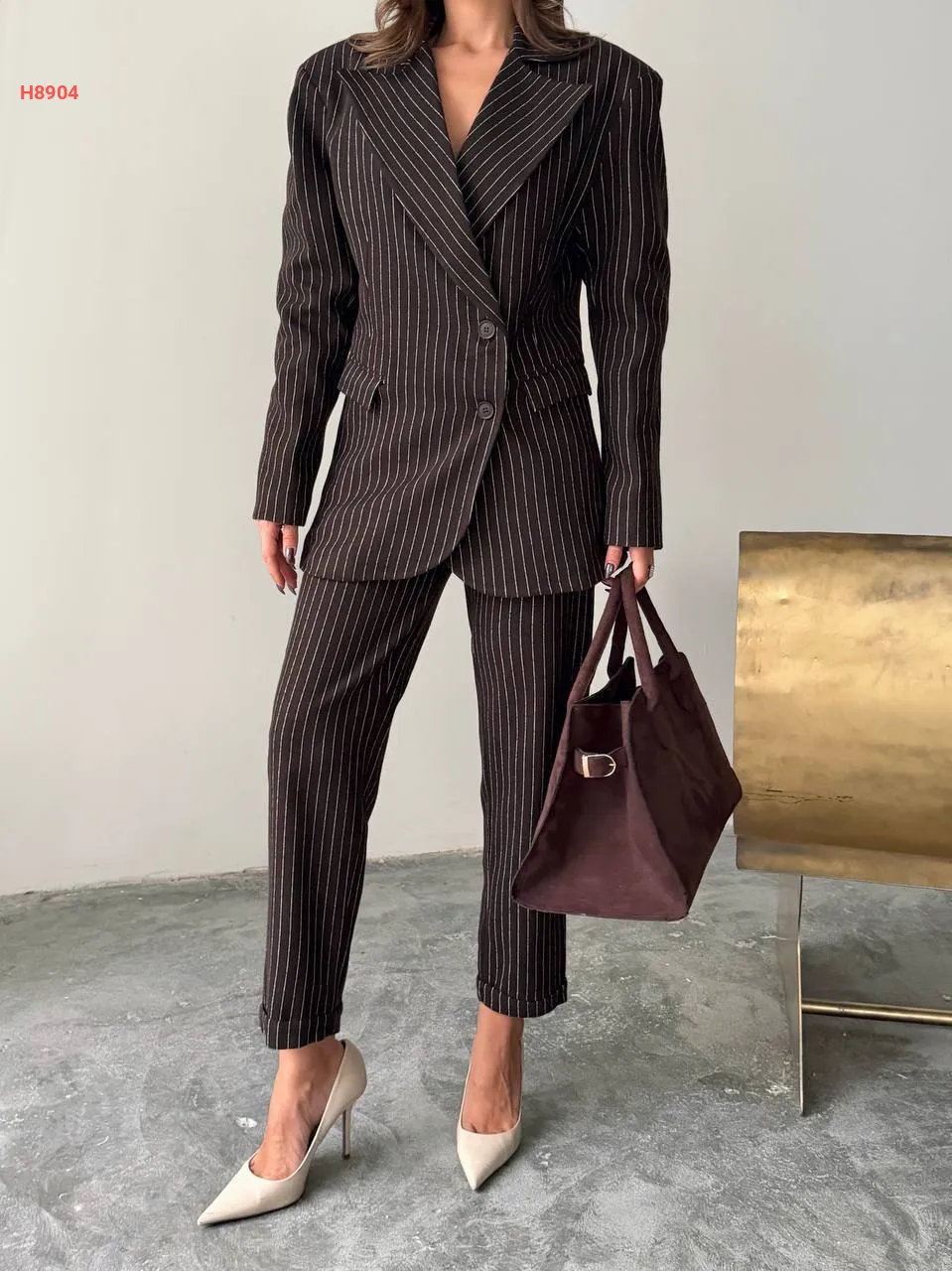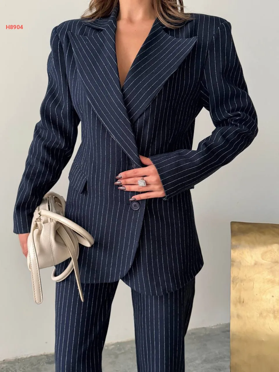 طقم بنطال مقلم مع جاكيت