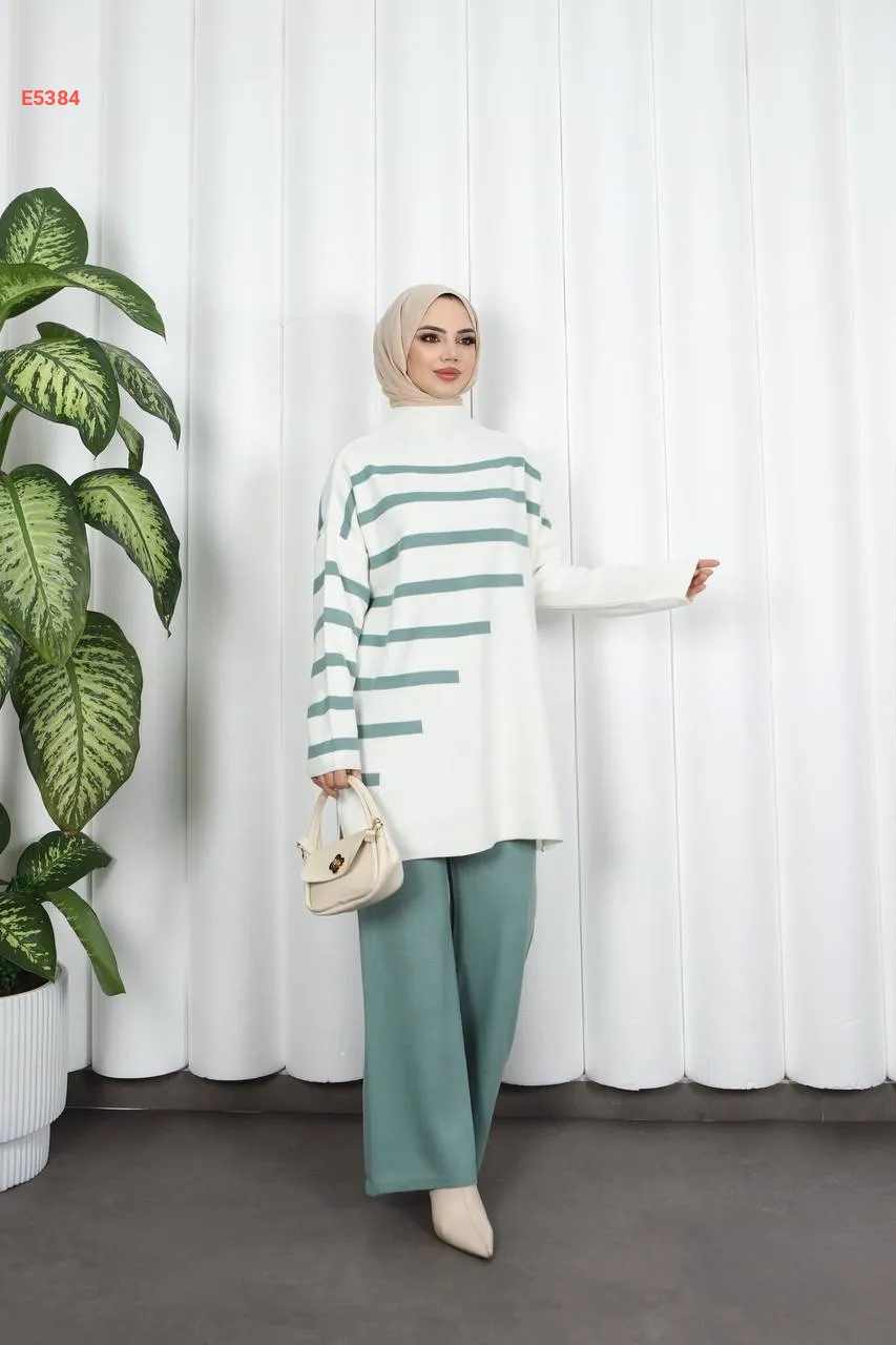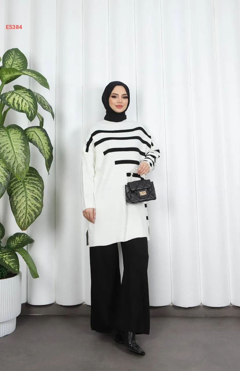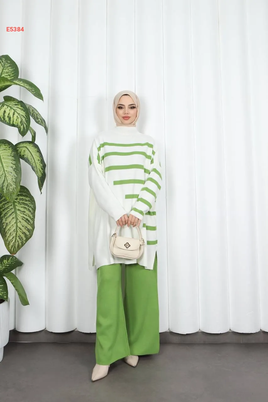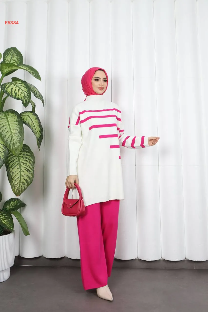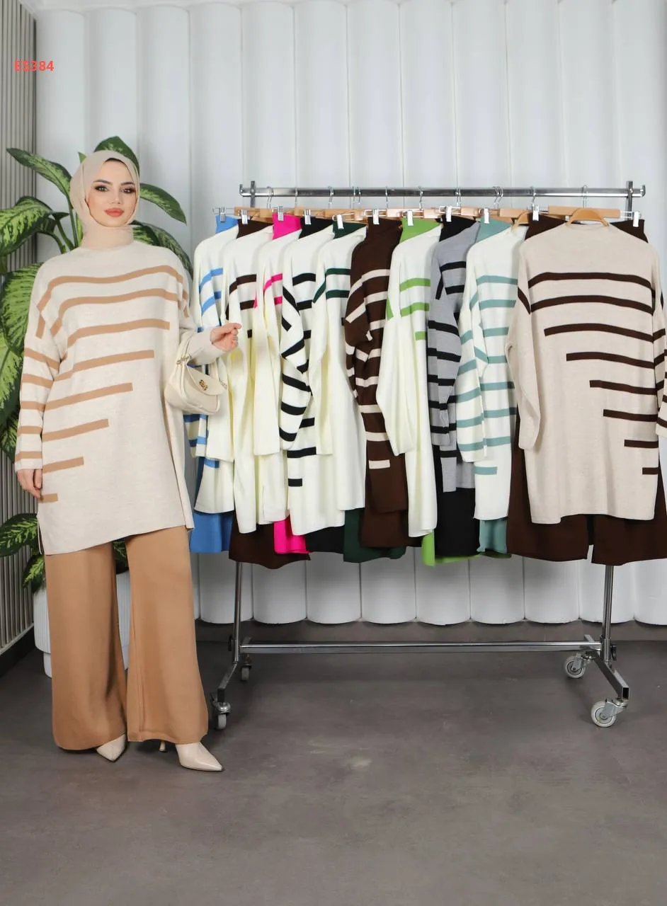 بيجامة قطعتين مخططة من الجانب