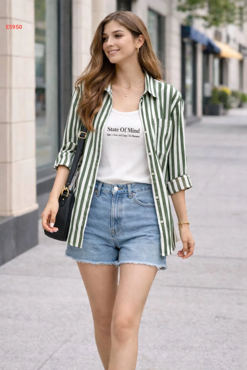 قميص مقلم قطعتين مع كنزة