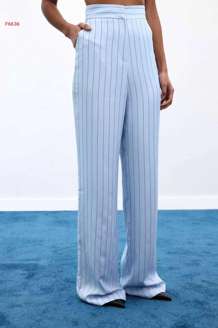 بنطال مقلم واسع