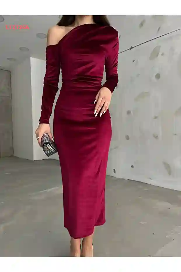 فستان مخمل سادة مكشوف الكتف...