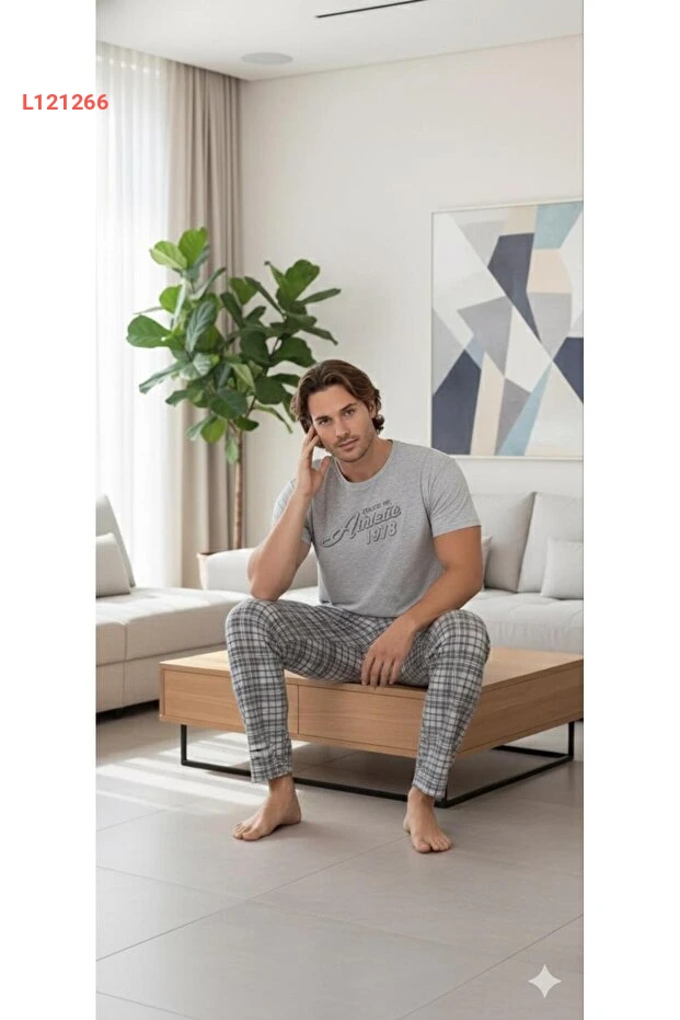 طقم بيجاما قصير الأكمام للرجال بتصميم كارو من سوده