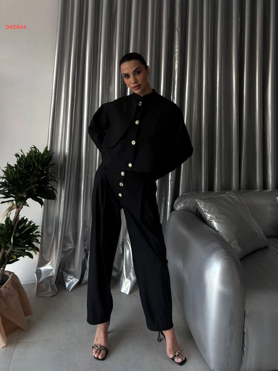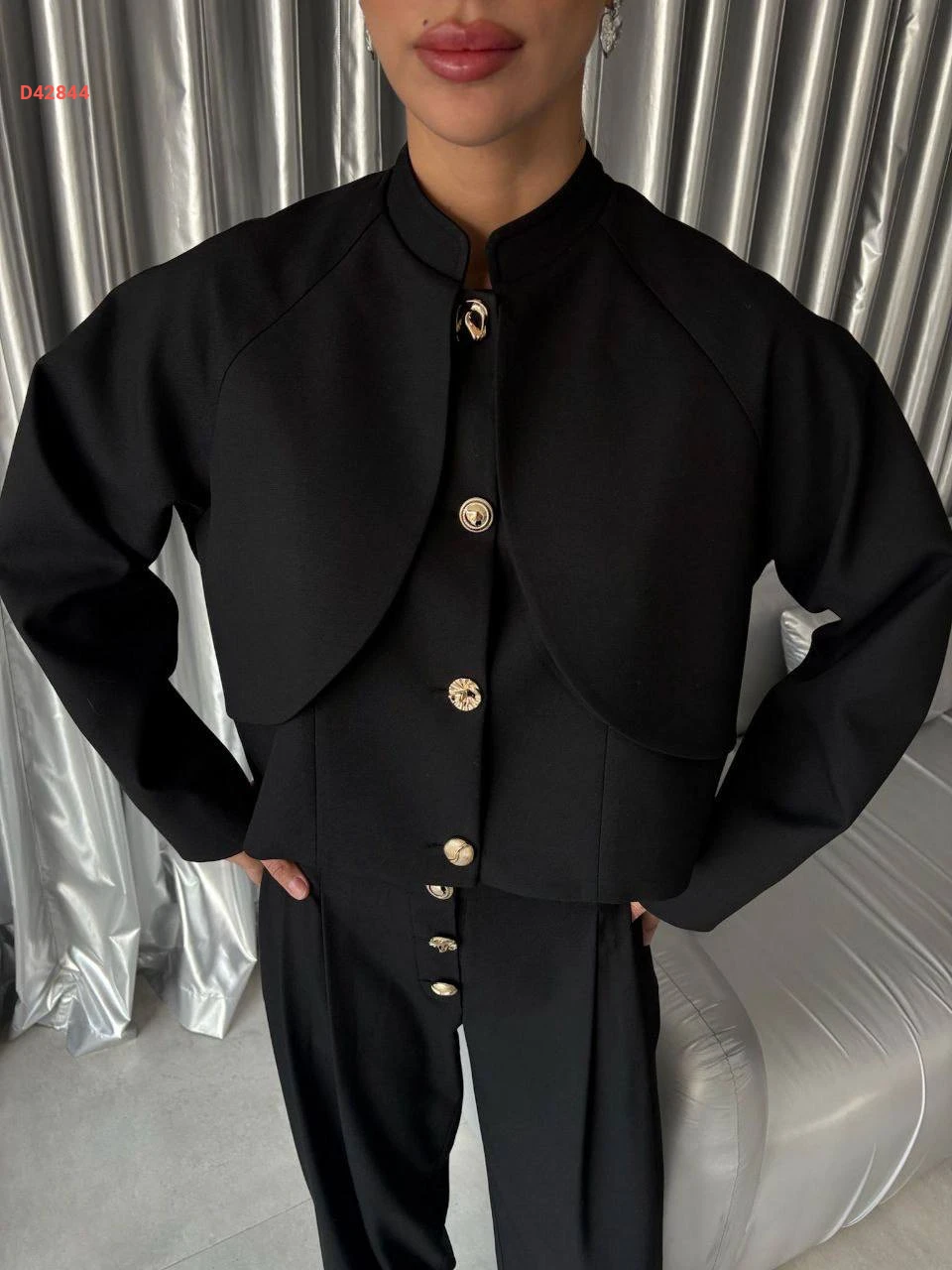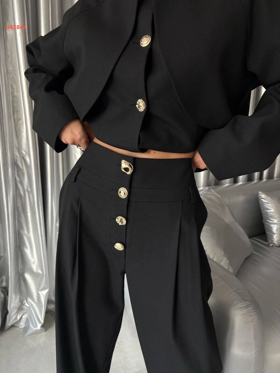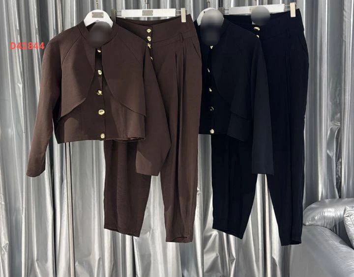 طقم بنطال وجاكيت بأزرار دهبي