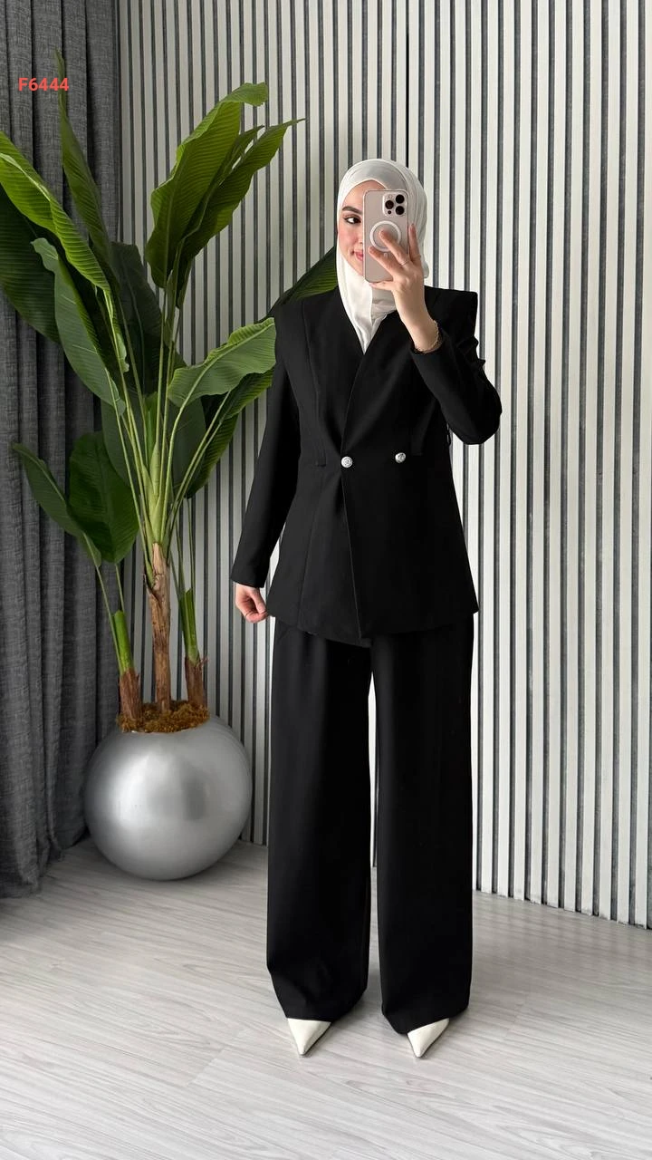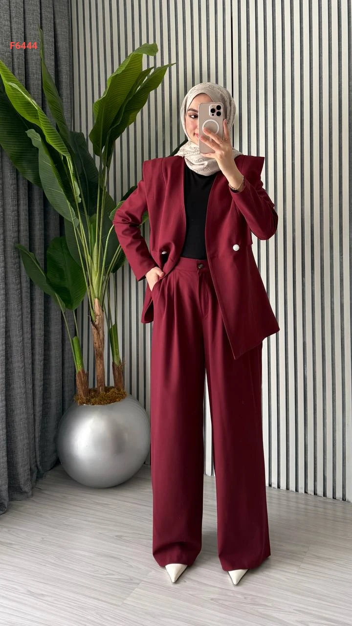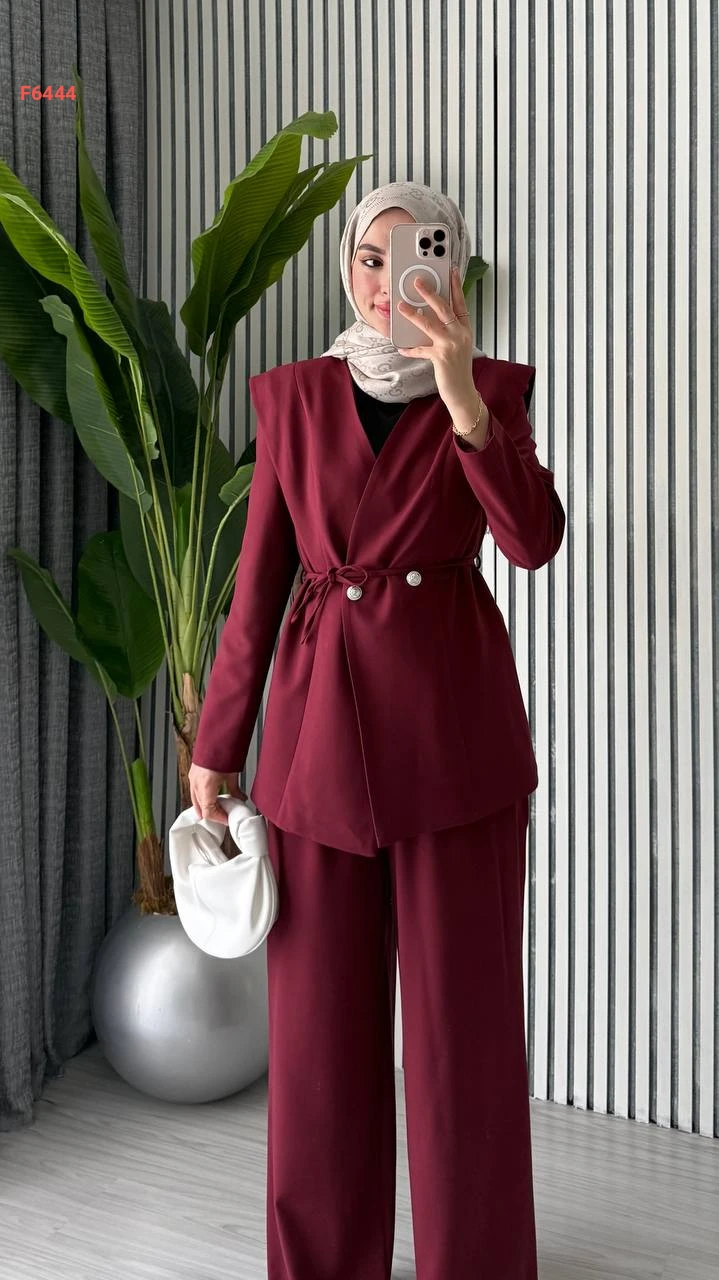 طقم بنطال وبليزر مع زنار رفيع