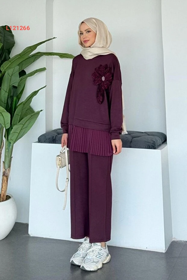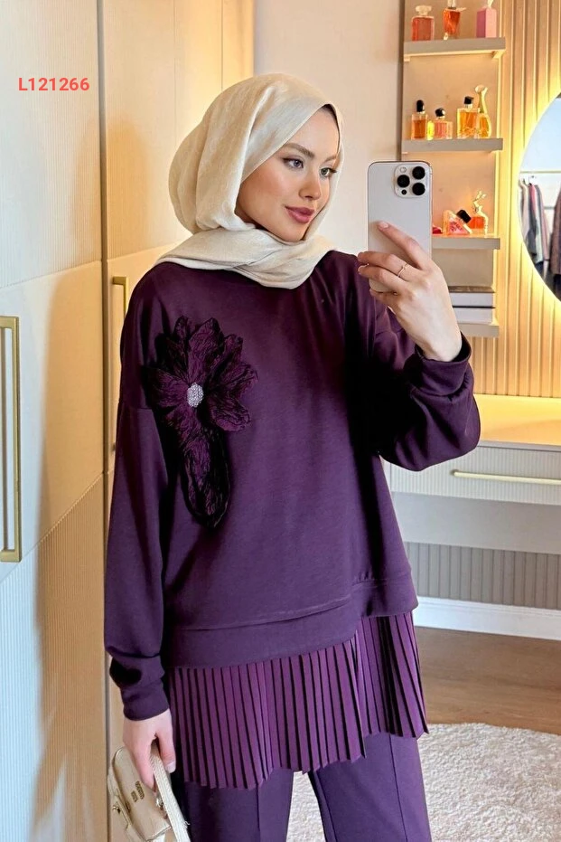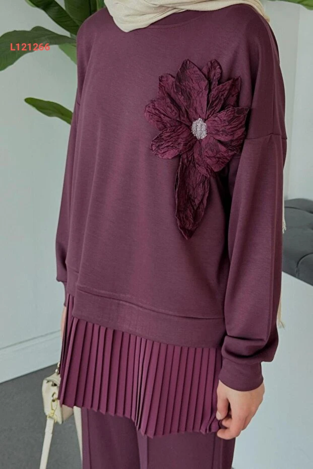 استمتعي بأناقة لا تُضاهى مع مجموعة Şulemoda Damla Piliseli بالأرجواني العميق. تجمع هذه الطقم بين التصميم العصري والراحة الفائقة، مع تفاصيل ناعمة تضفي لمسة من الأناقة على إطلالتك. مثالي لجميع المناسبات، ستحصلين على إطلالة تبرز جمالك وثقتك كل يوم.