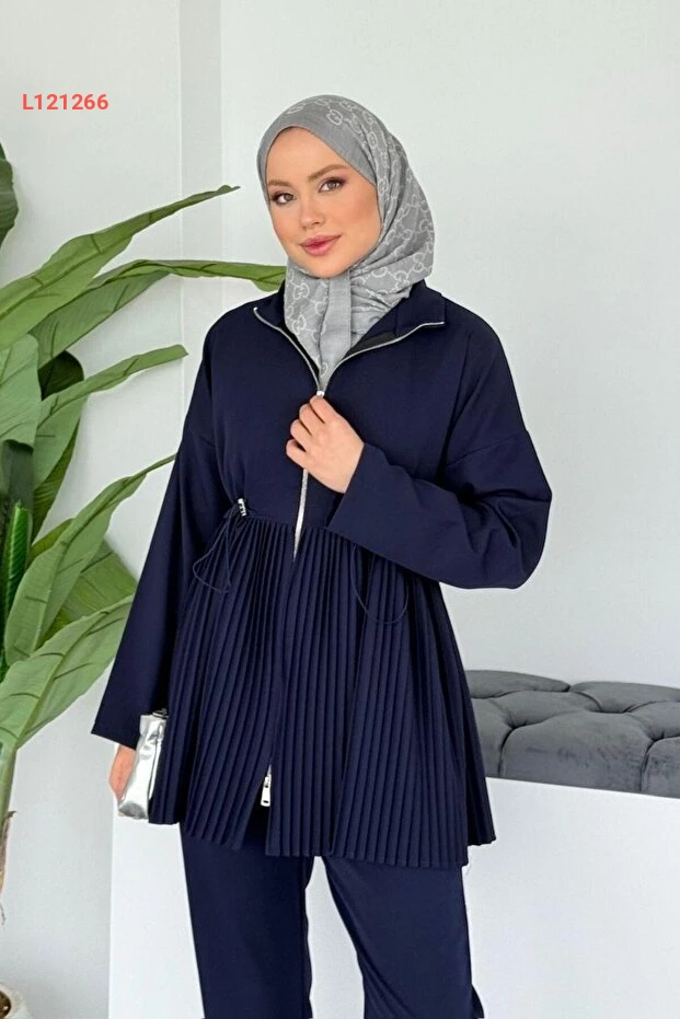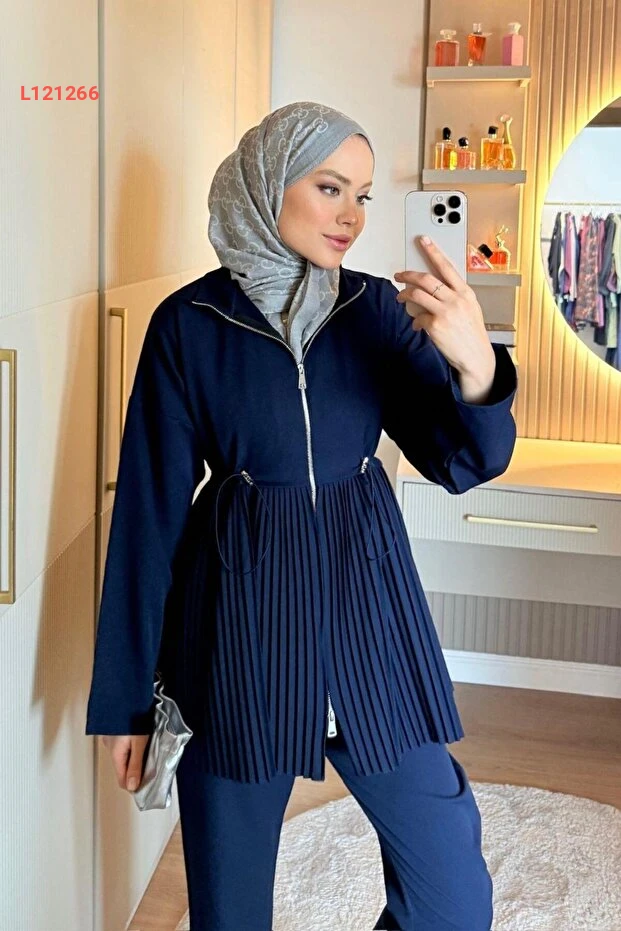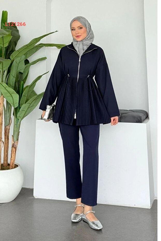 استمتعي بإطلالة أنيقة ومتألقة مع مجموعة Şulemoda Giyim Mabella Piliseli بلونها الساحر الأزرق النيلي. تأتي هذه الطقم المكون من تنورة وبلوزة بتصميم مطوي يمنحك مظهراً عصريًا واحترافيًا، مما يجعله مثاليًا للمناسبات المختلفة. صممت هذه القطعة لمزيد من الراحة والأناقة، لتبقيك متألقة في كل لحظة.