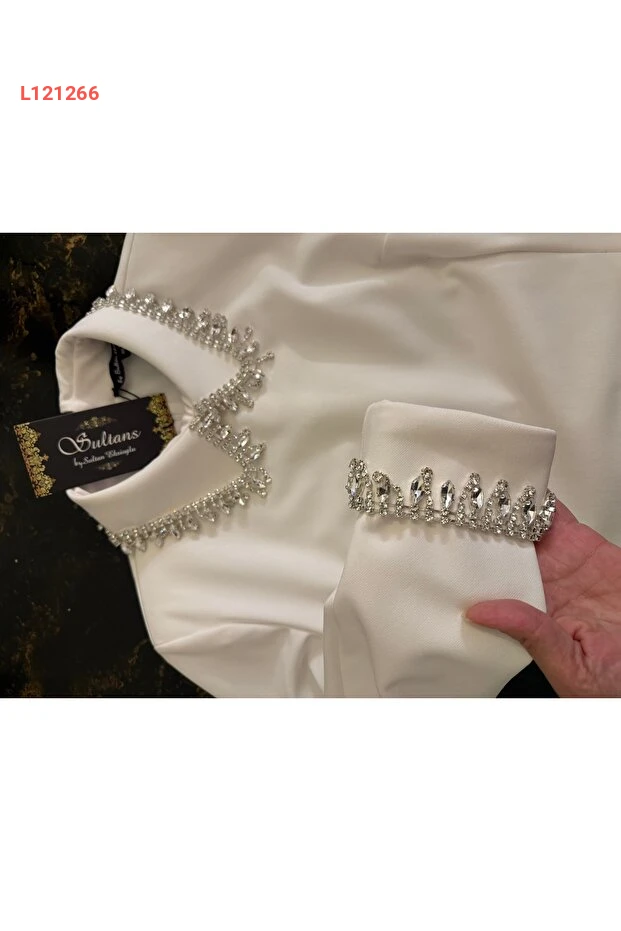 استمتع بإطلالة ساحرة مع فستان "سلطان أكشيوغلو" الأنيق! يتميز بتصميمه البسيط والأنيق بلون أبيض نقي وقماش ليكرا مرن يمنحك الراحة والحرية في الحركة. تزينه حبات الستراس اللامعة، مما يجعل هذا الفستان الخيار المثالي لمناسباتك الخاصة حيث ستتألقين بكل ثقة.
