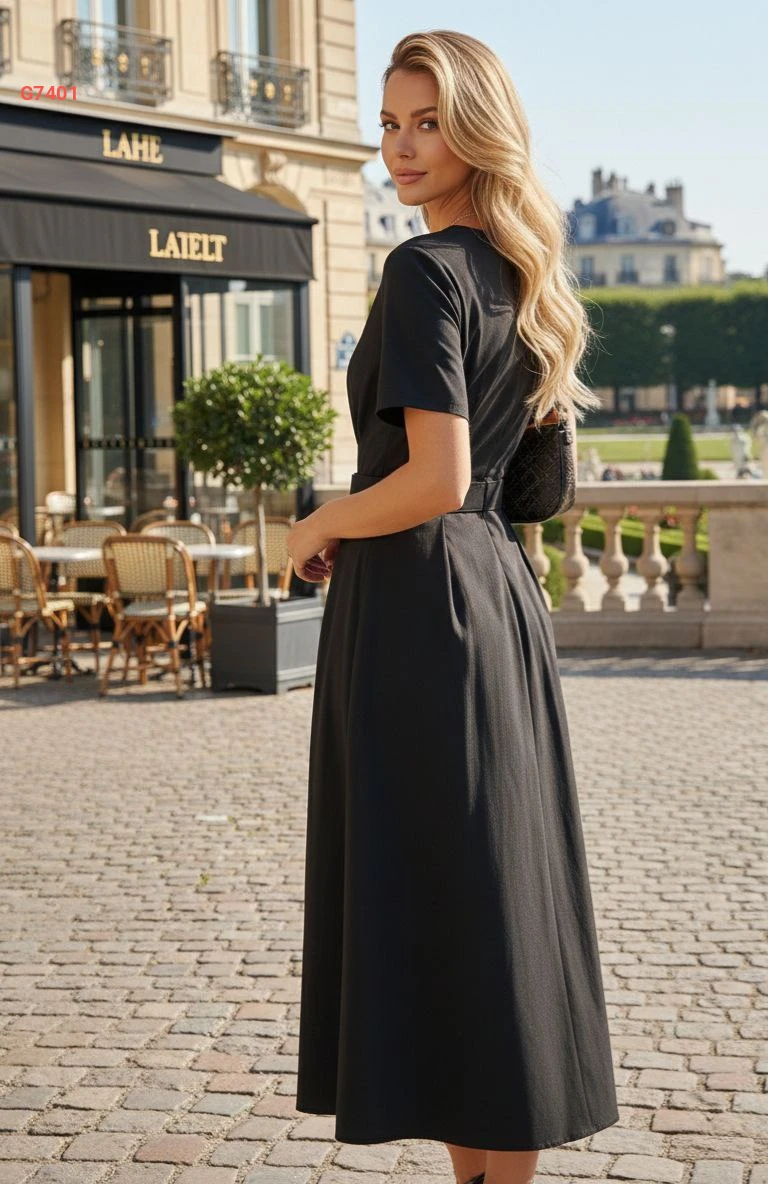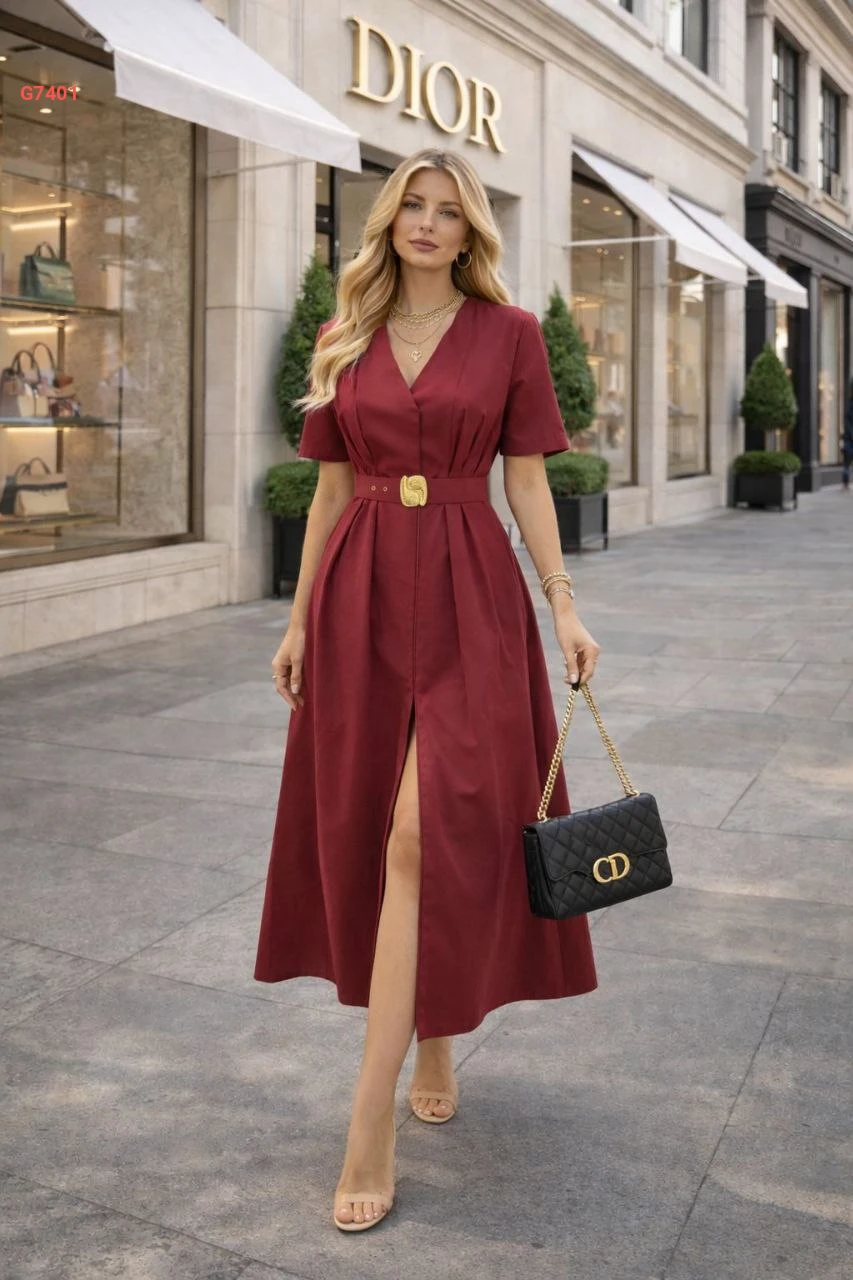 فستان صيفي بفتحة أمامية وحزام ببروش