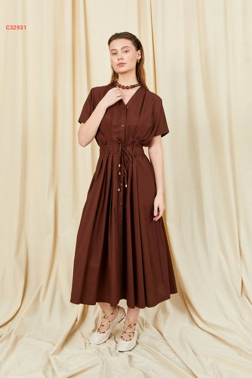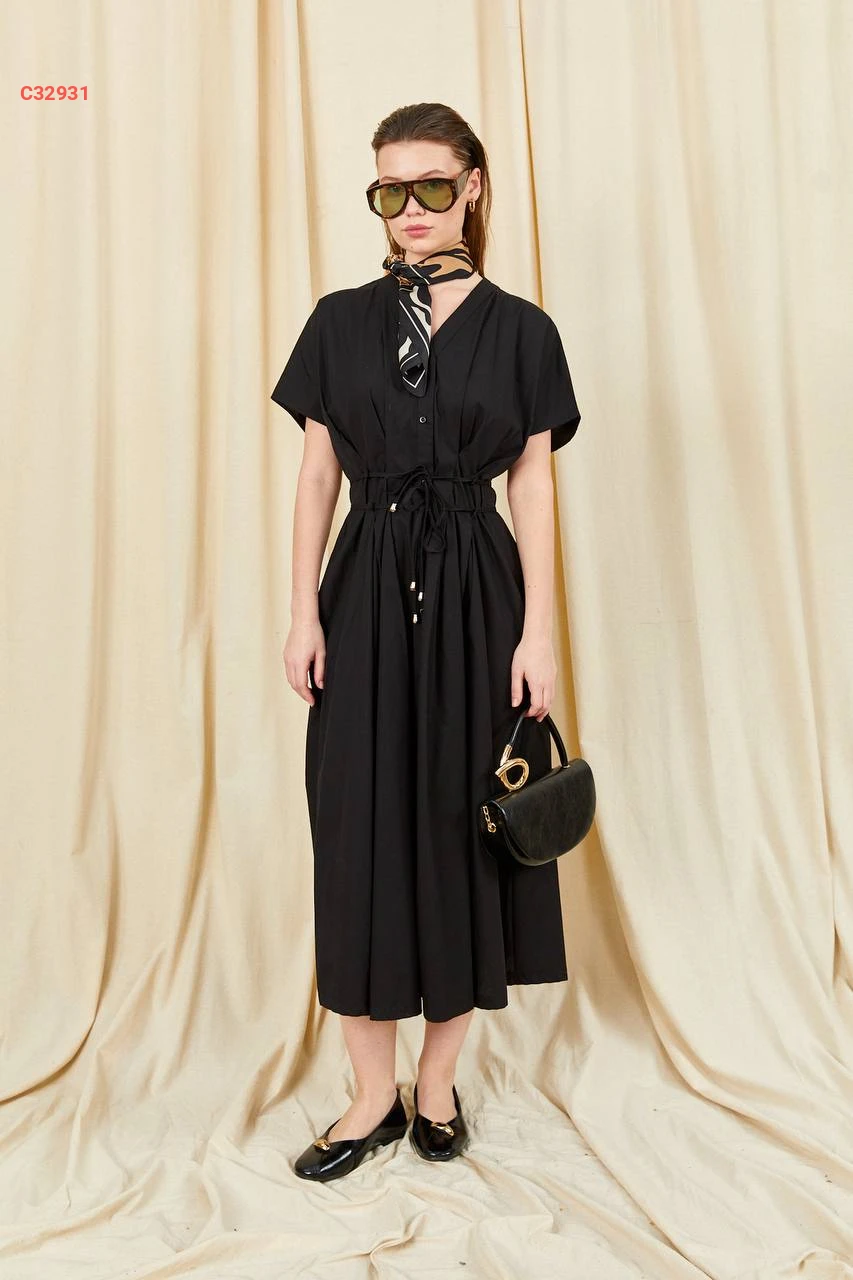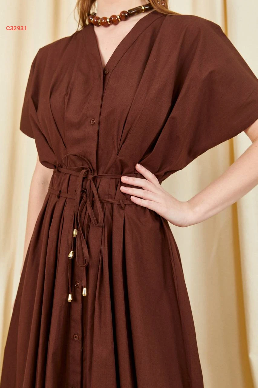 فستان صيفي كلوش بأزرار وزنار