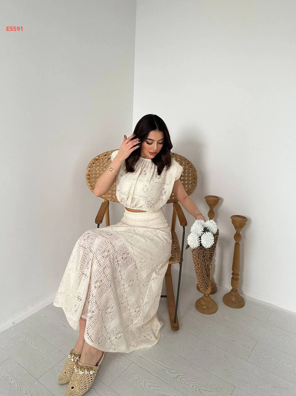 طقم تنورة صيفي مفرغ