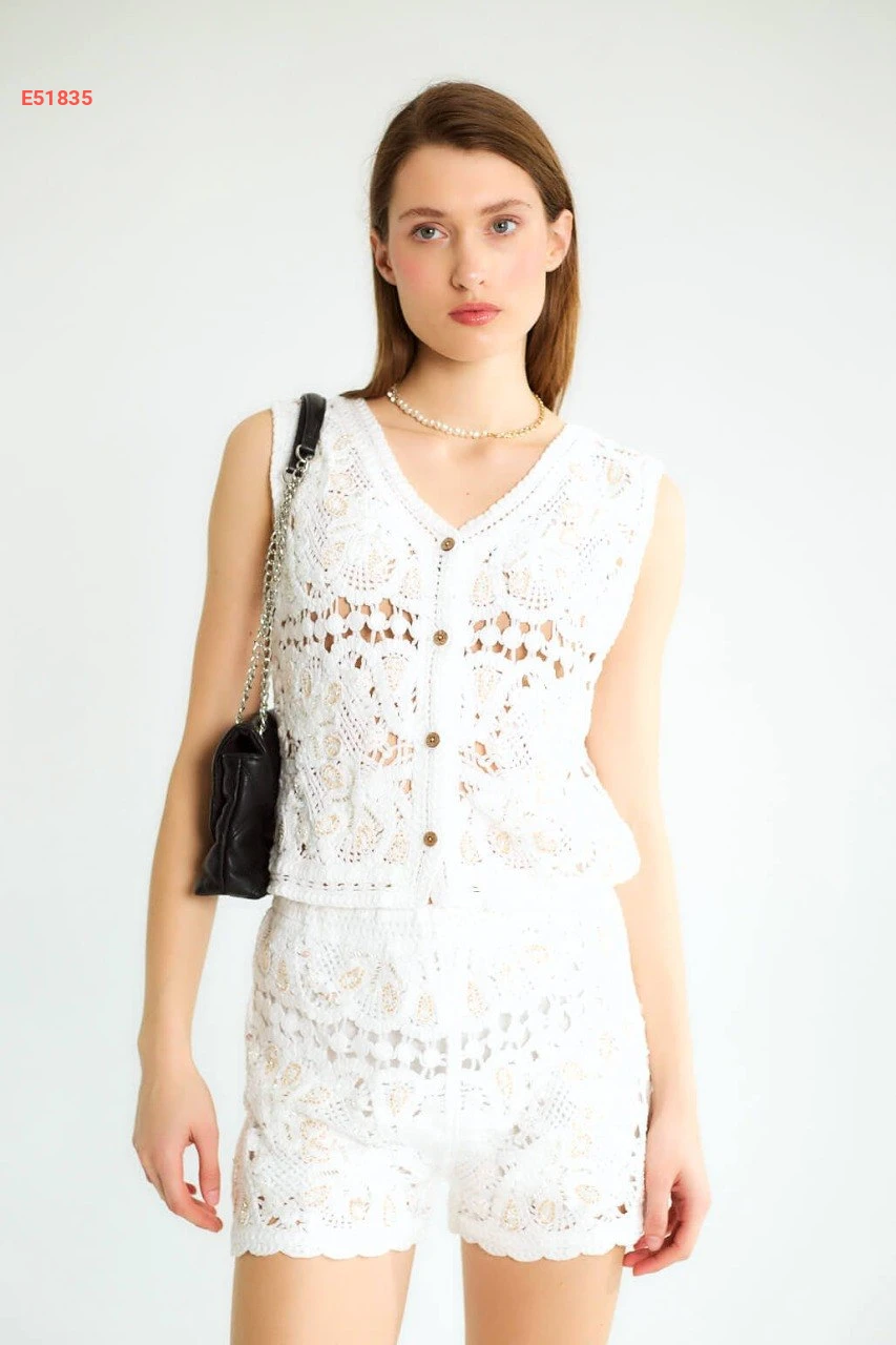 طقم شورت صيفي مفرغ