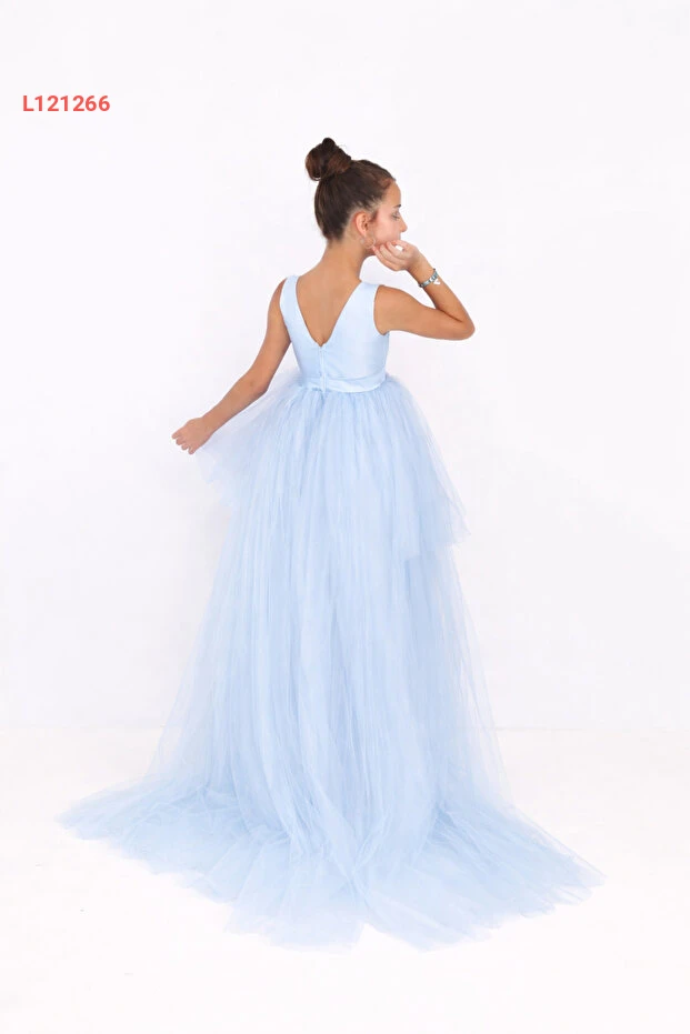 تألقي بأناقة مع فستان التخرج واحتفالات أعياد الميلاد من SUNEH، المصنوع بلون البيبي الأزرق الساحر. يتميز بتصميم أنالوب الأنيق الذي يضمن راحة مثالية وحركة حرة لطفلتك، مما يجعلها نجمة الحفل. اجعلي كل لحظة خاصة لها مع لمسة من الفخامة والبراءة في هذا الفستان المميز!