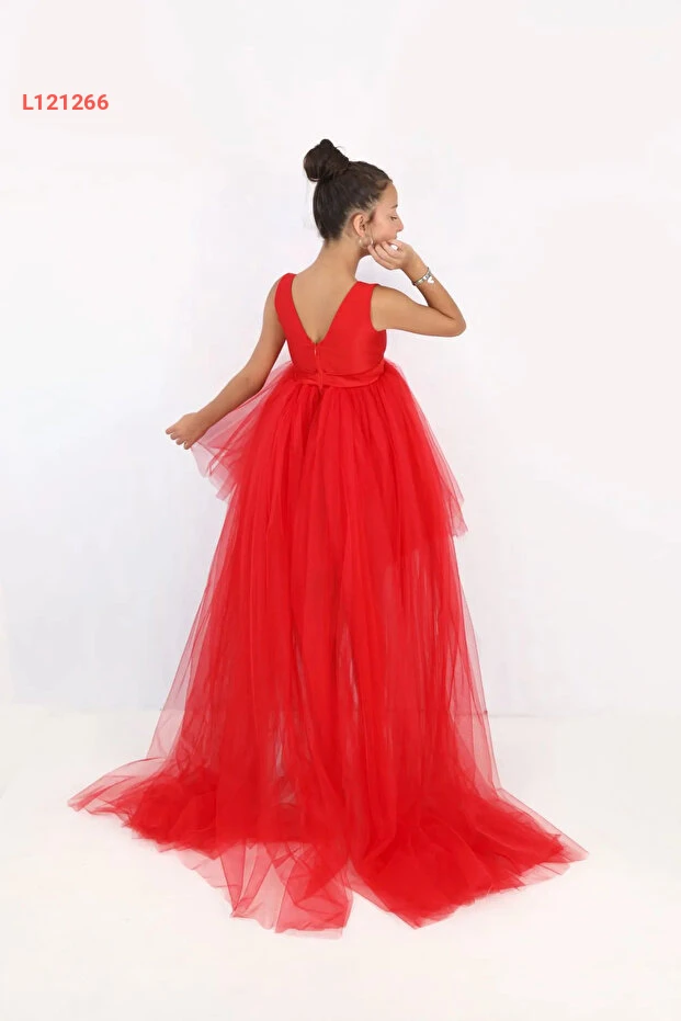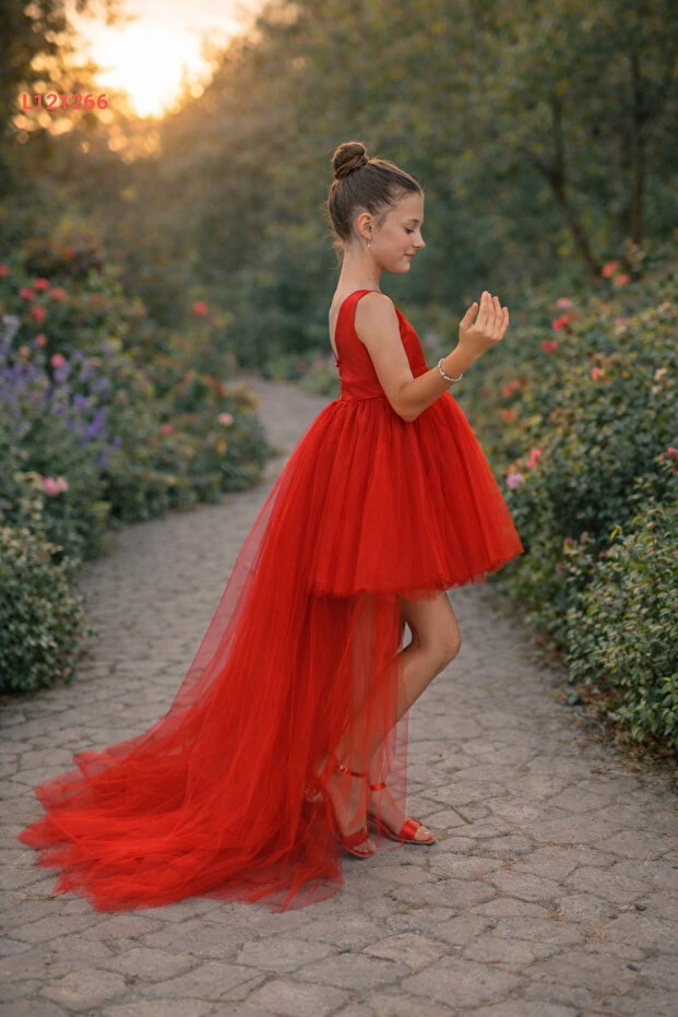 فستان تخرج وحفلات عيد ميلاد للأطفال باللون الأحمر من سونيه