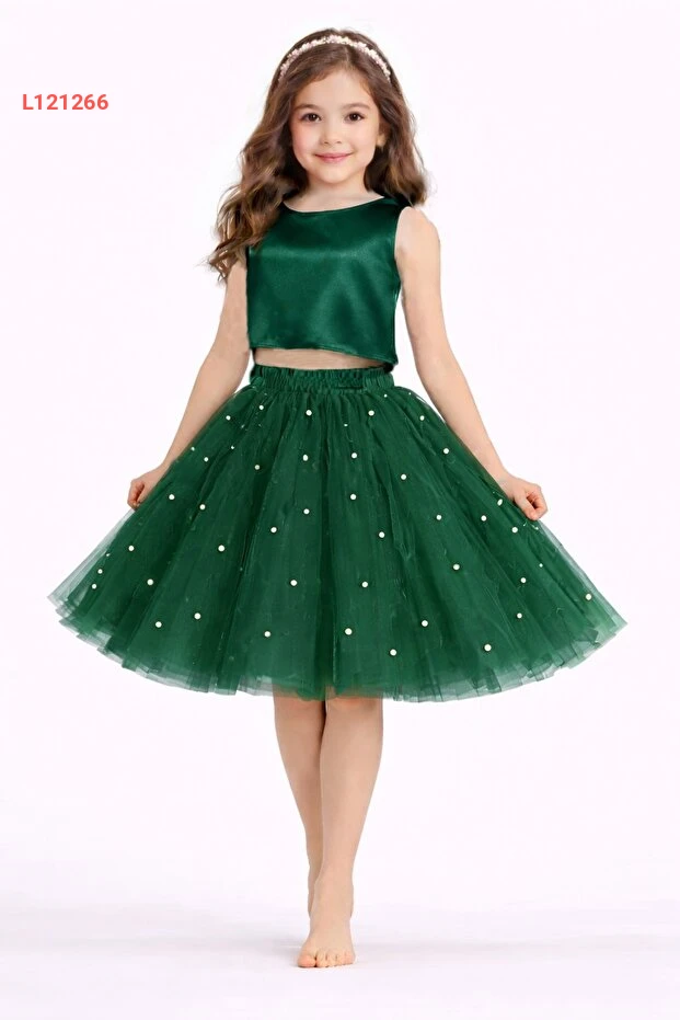 تنانير سونه للأطفال مزينة باللؤلؤ باللون الأخضر الزمردي لمناسبات عيد الميلاد والتخرج والاحتفالات