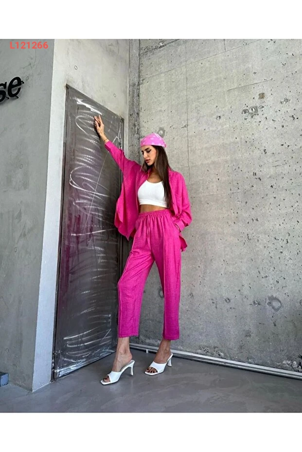 ارتقِ بإطلالتك مع مجموعة İkmal Kadın، التي تضم قميصًا وبنطالًا بتصميم عصري باللون الفوشيا الجذاب! مصنوع من قماش الكتان عالي الجودة، هذه المجموعة توفر لكِ الراحة والأناقة في آن واحد، مما يجعلها مثالية لمناسباتك اليومية أو التجمعات. استمتعي بإطلالة متكاملة تعكس شخصيتك الجريئة والمميزة.