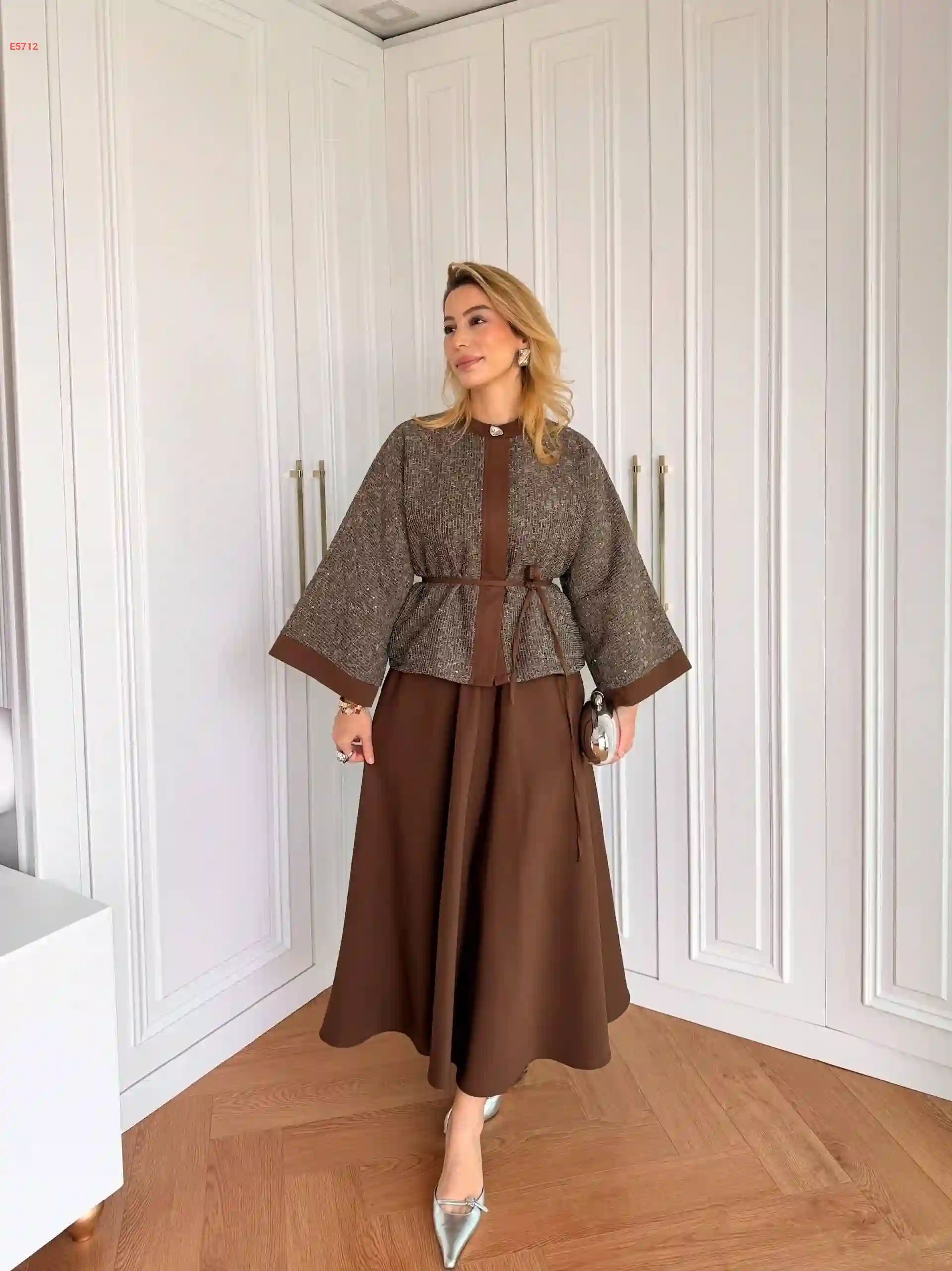 <p>طقم قطعتين بأزرار مخفية، مع ربطة خصر ، بأكمام واسعة </p><p>متعدد الألوان </p><p>المقاس : S / M/ L / XL </p><p><br></p>