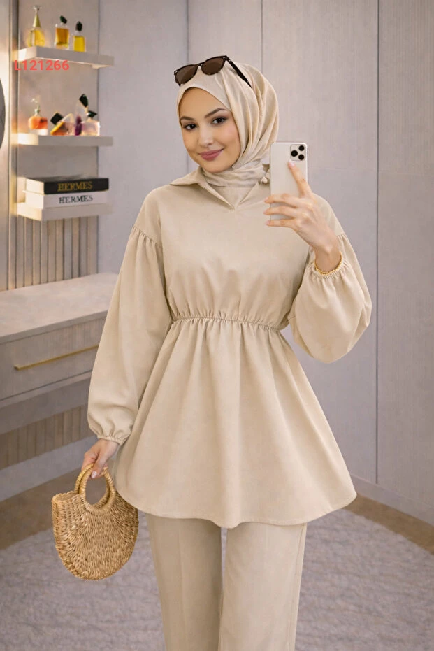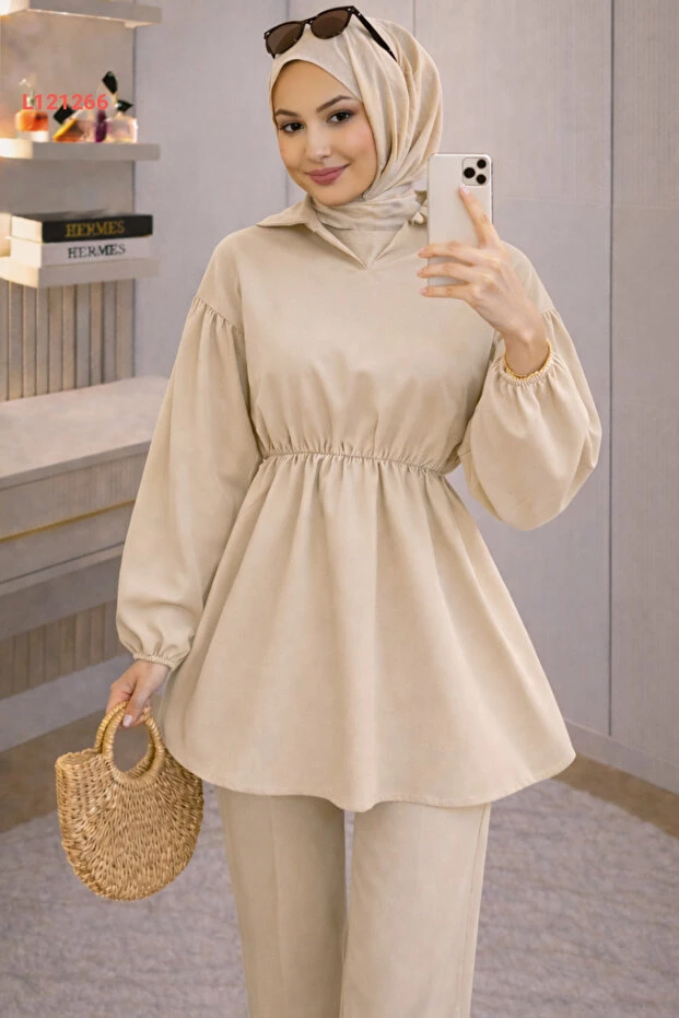 استمتع بإطلالة أنيقة ومريحة مع طقم SUWWE Laria Krem Tesettür، الذي يجمع بين الأناقة والراحة في تصميم متكامل. يتميز بلونه الكريمي الفاتح الذي يناسب جميع المناسبات، بالإضافة إلى خامته عالية الجودة التي توفر لكِ حرية الحركة والشعور بالانتعاش طوال اليوم. ارتدي سحر الأنوثة مع لمسة من العصرية!