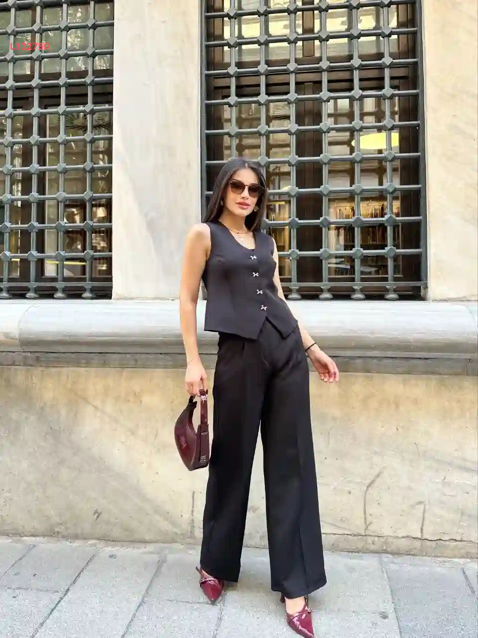 طقم بنطال تريكو وكنزة بتفاصيل ممزقة