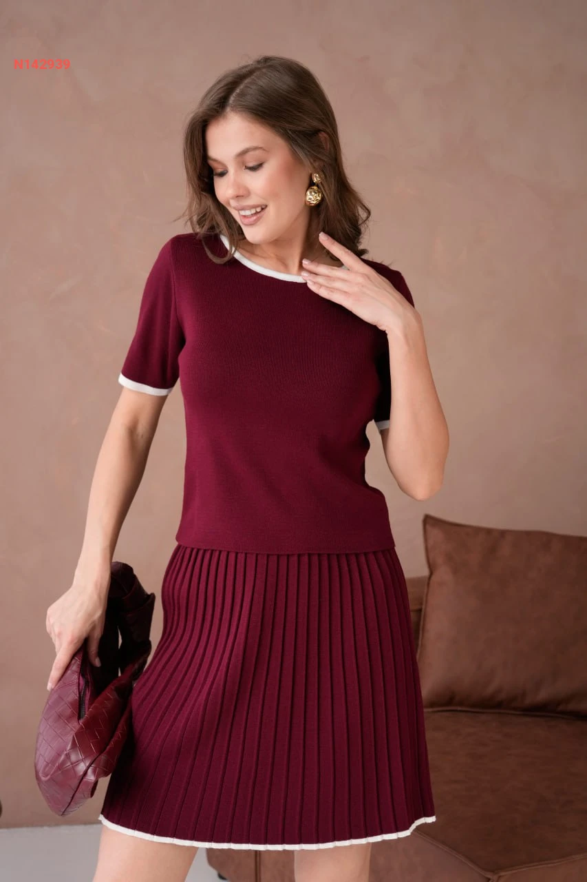 طقم كنزة و تنورة مكسرة