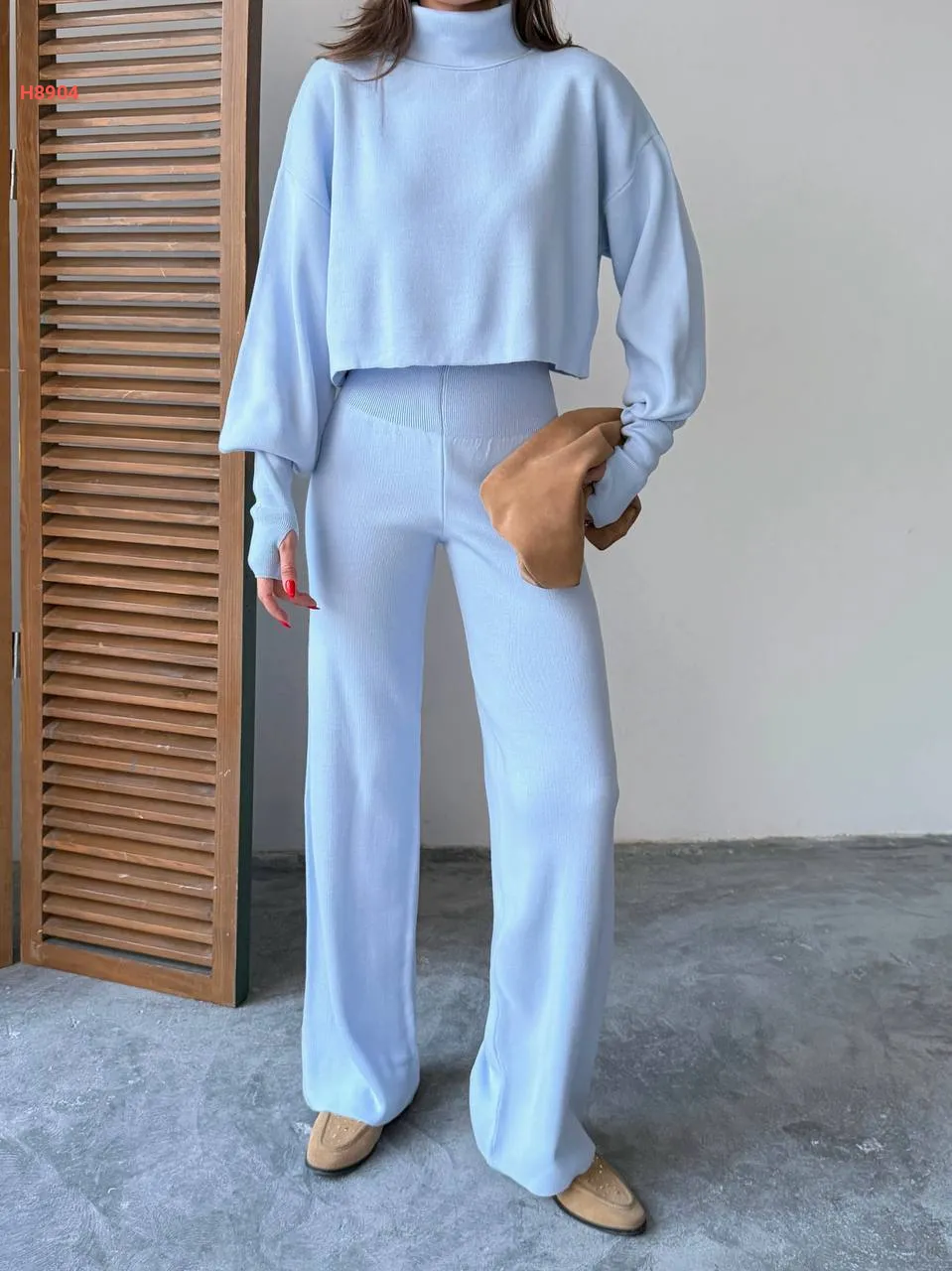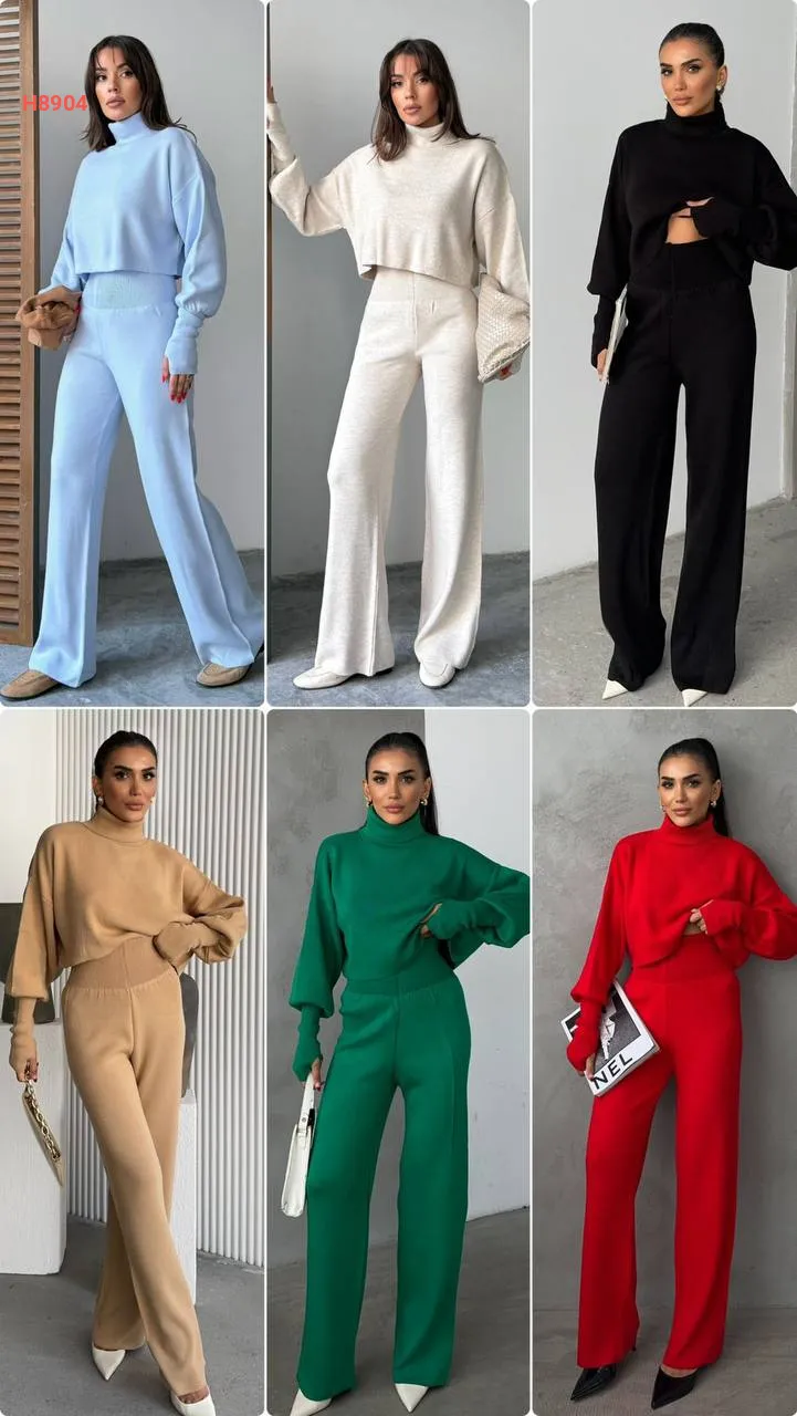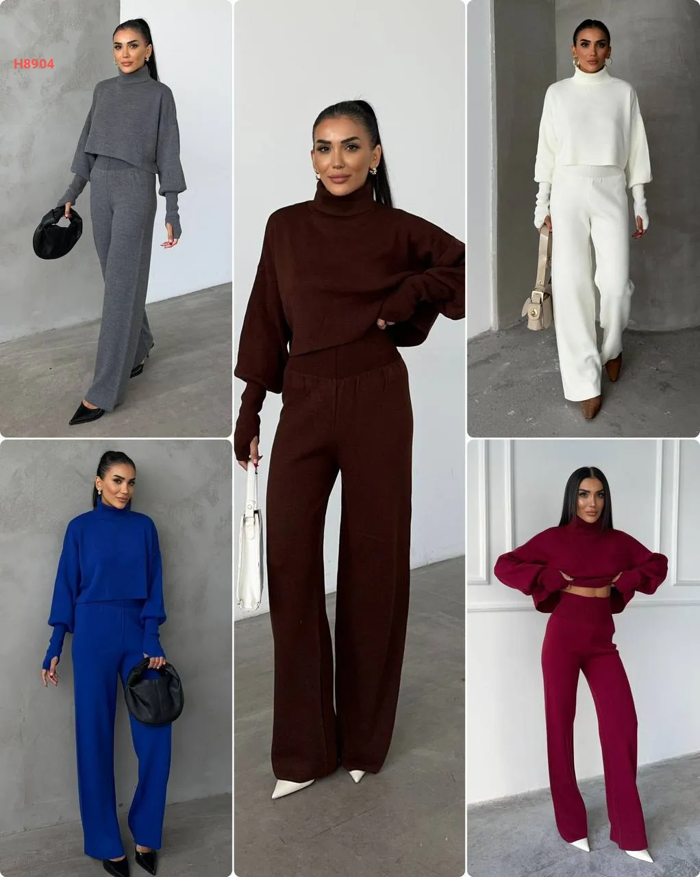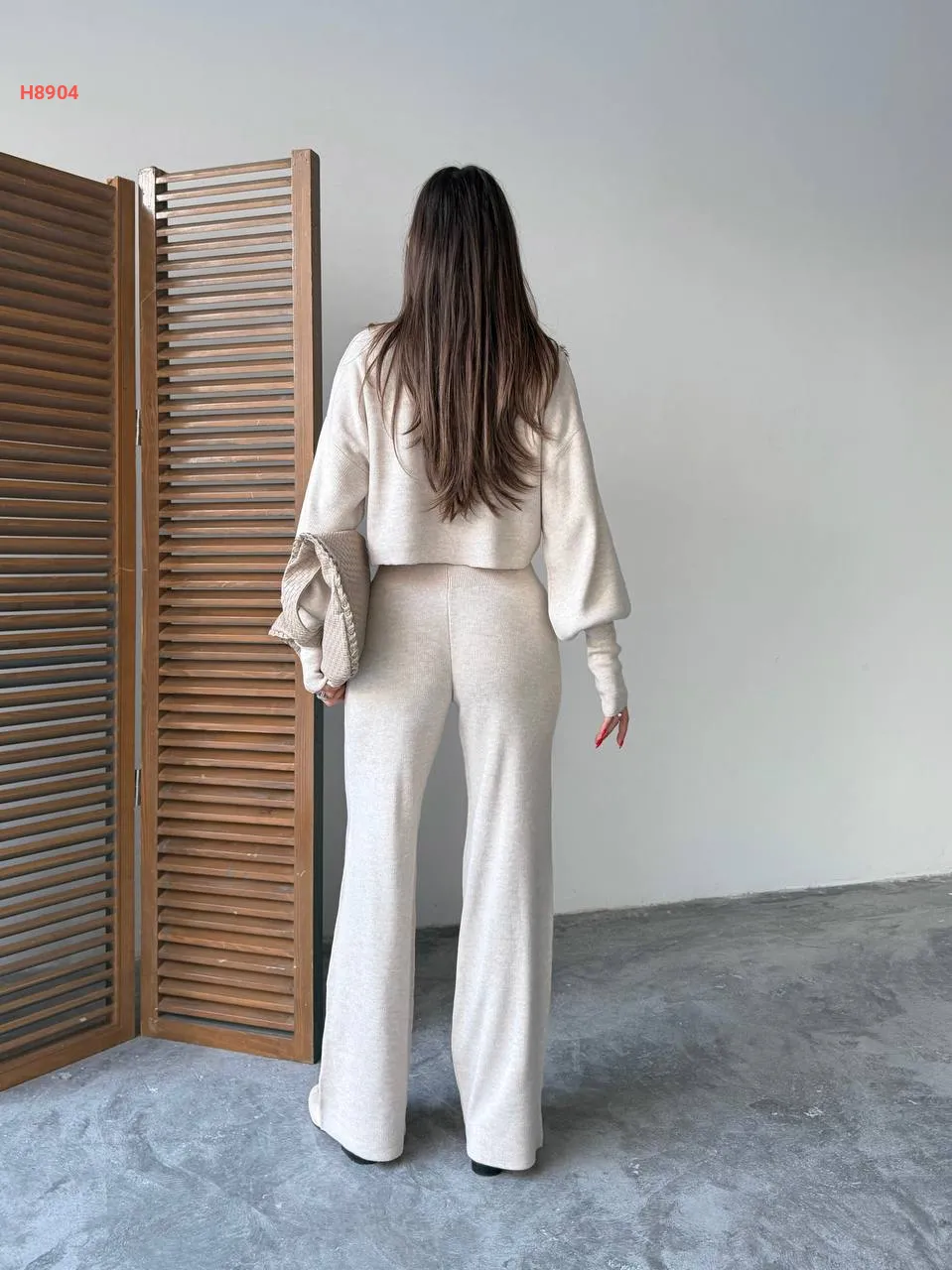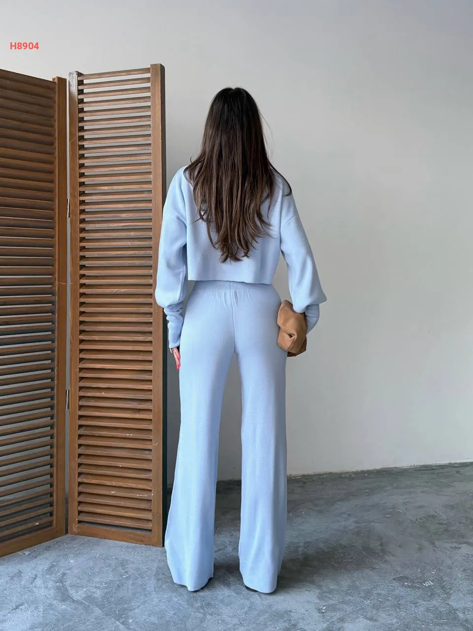 طقم بنطال تريكو وكنزة بفتحة إصبع