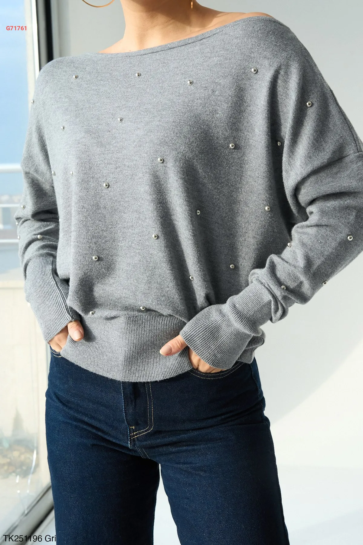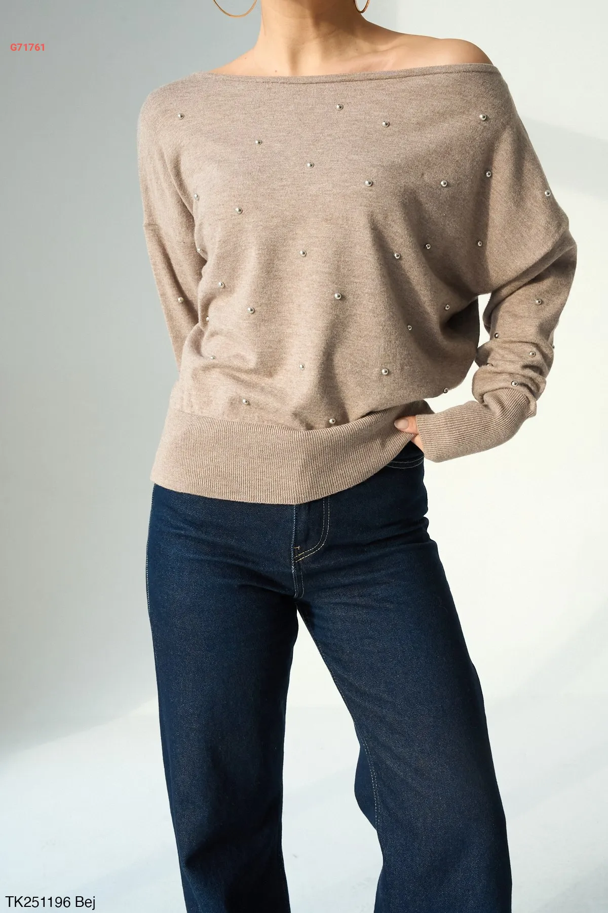 كنزة تريكو مزينة بحبات اللولو