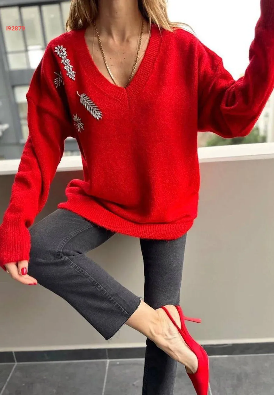 كنزة تريكو مزينة أحجار