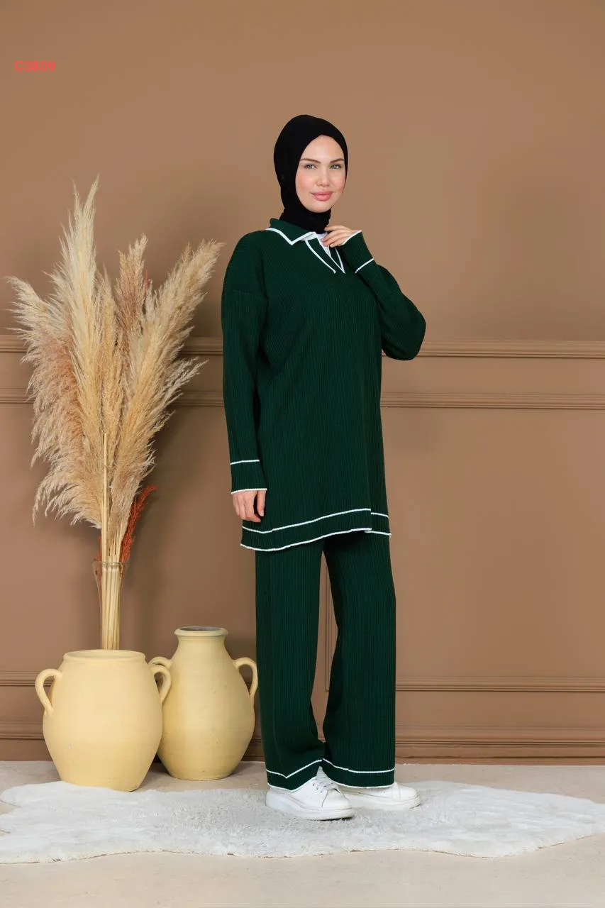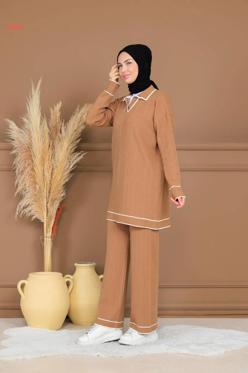طقم بنطال تريكو وتونيك قبة بولو