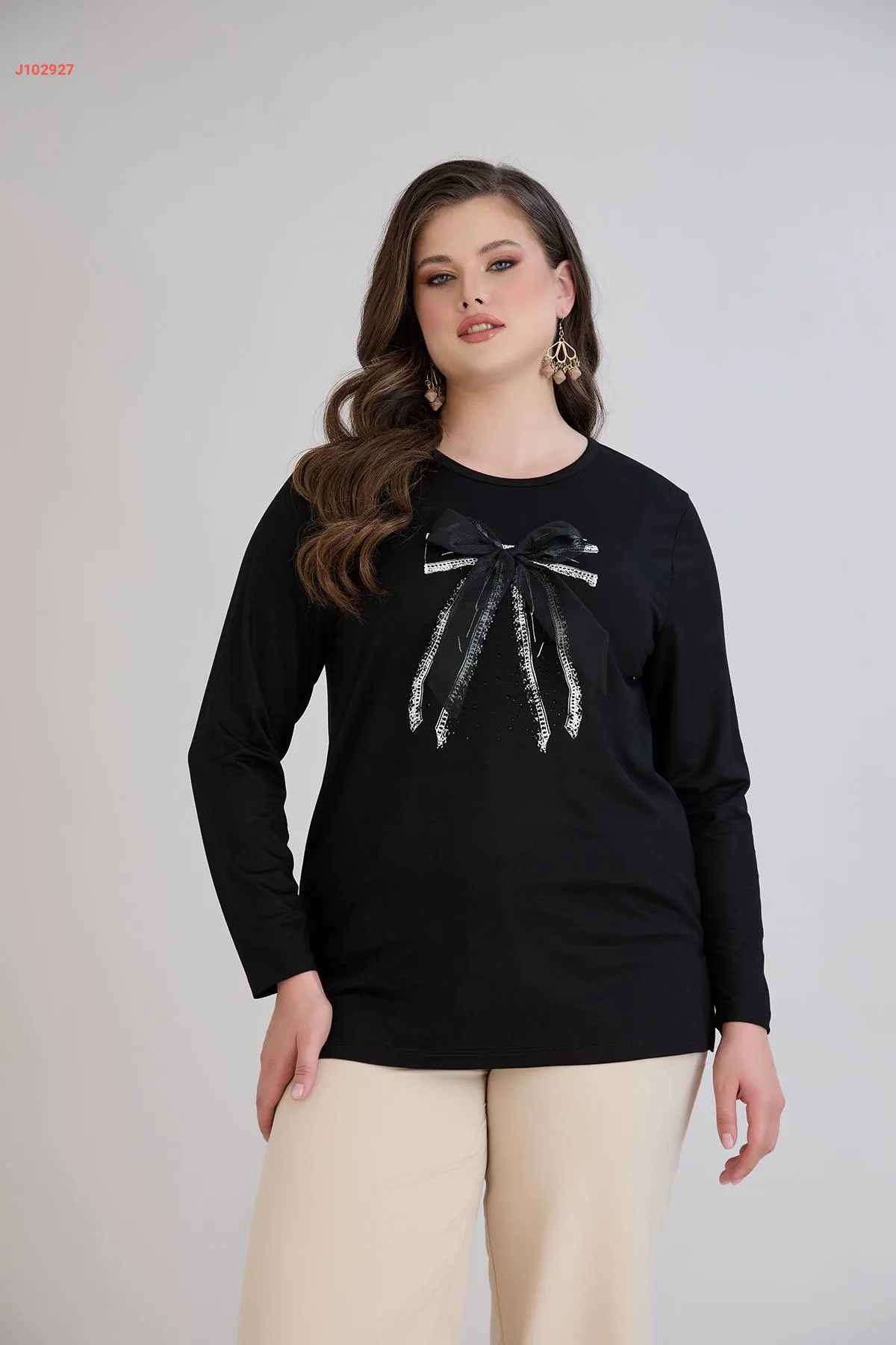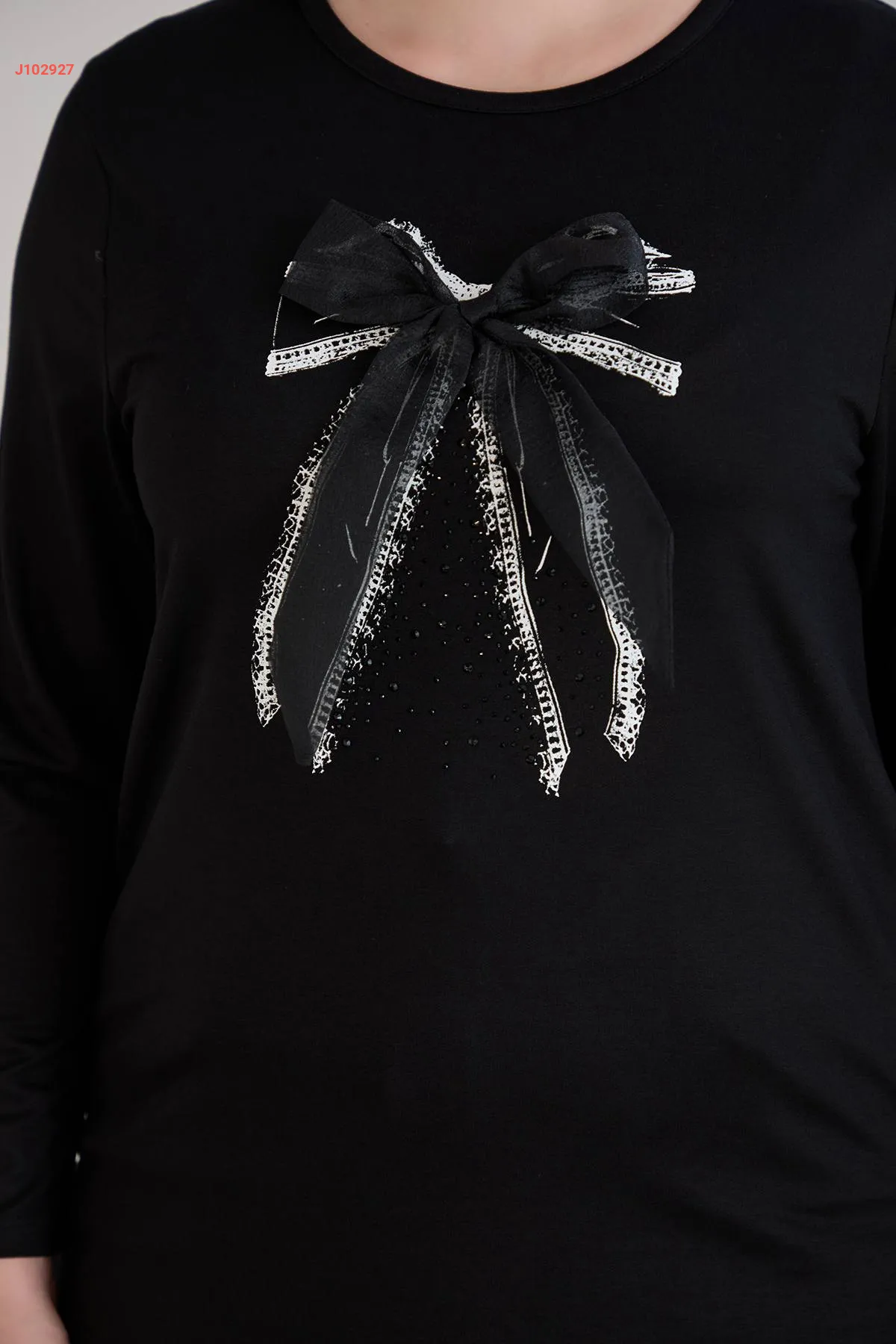 كنزة قياس كبير بفيونكة وستراس