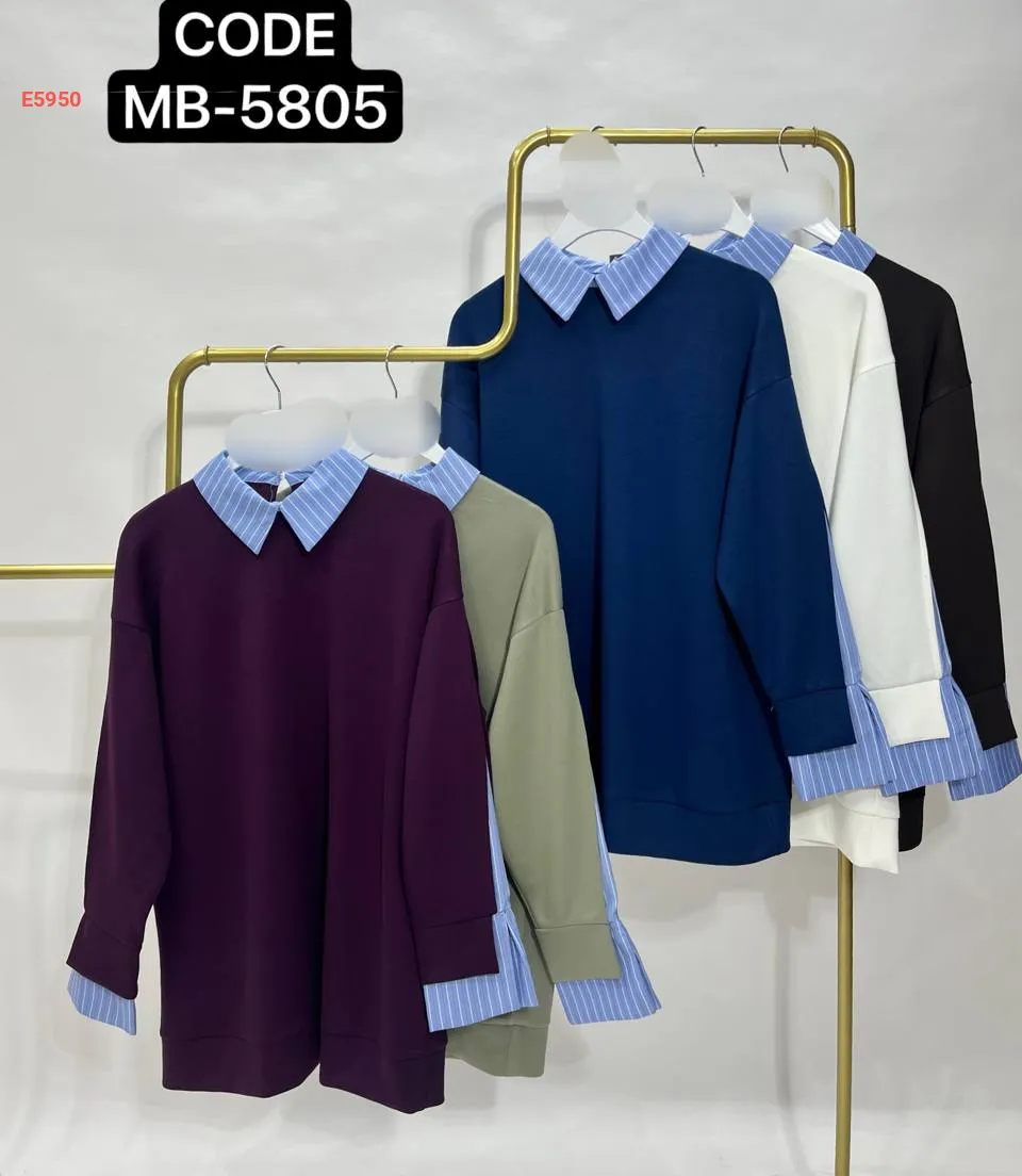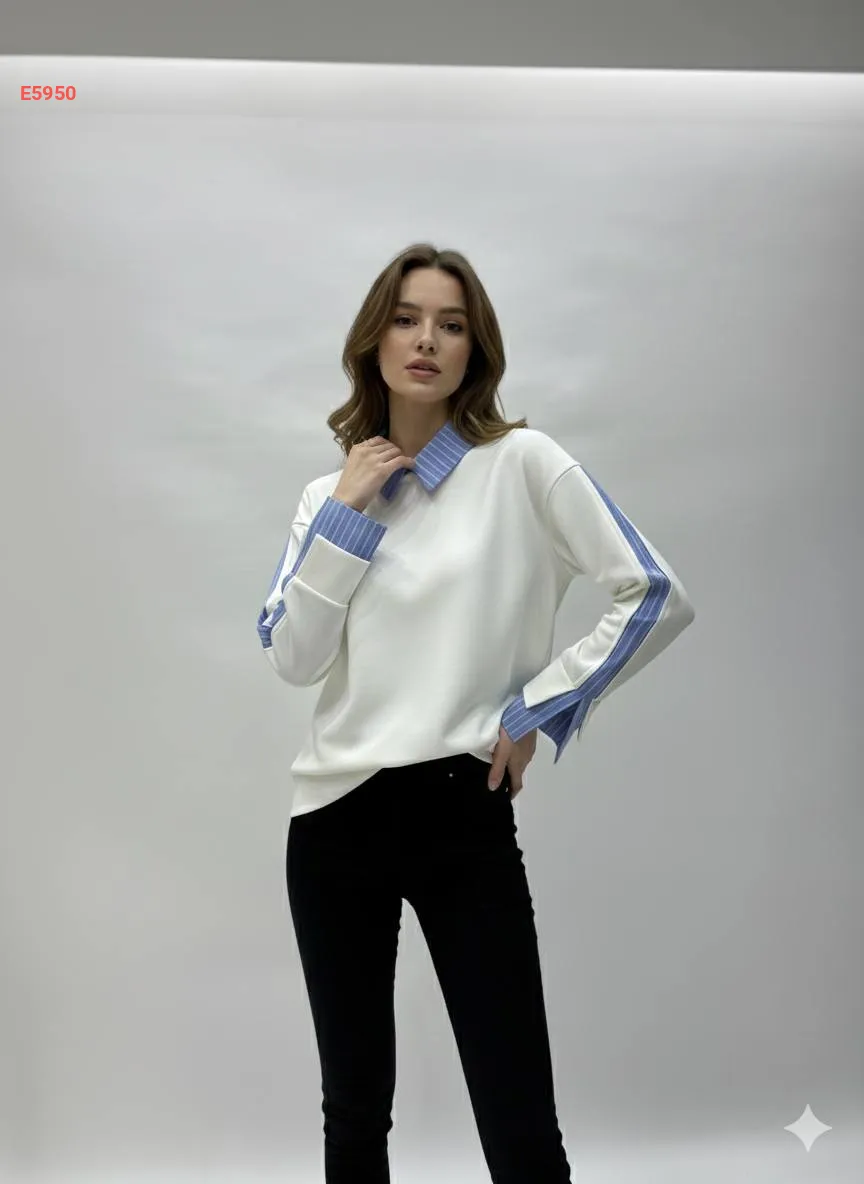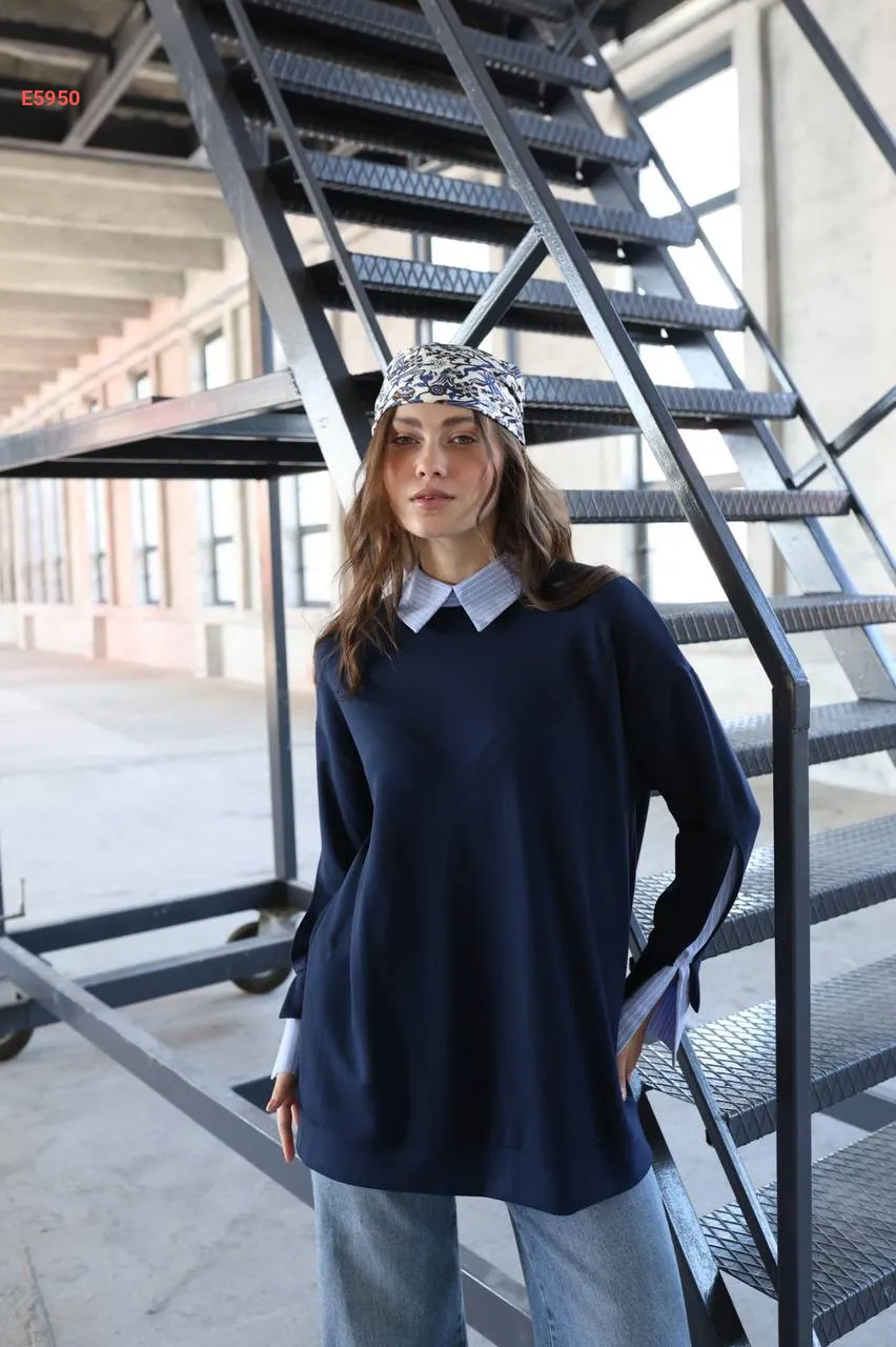 تونيك تريكو بأكمام وياقة قميص