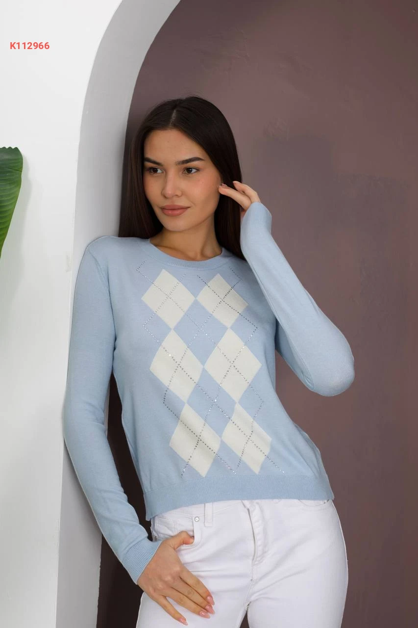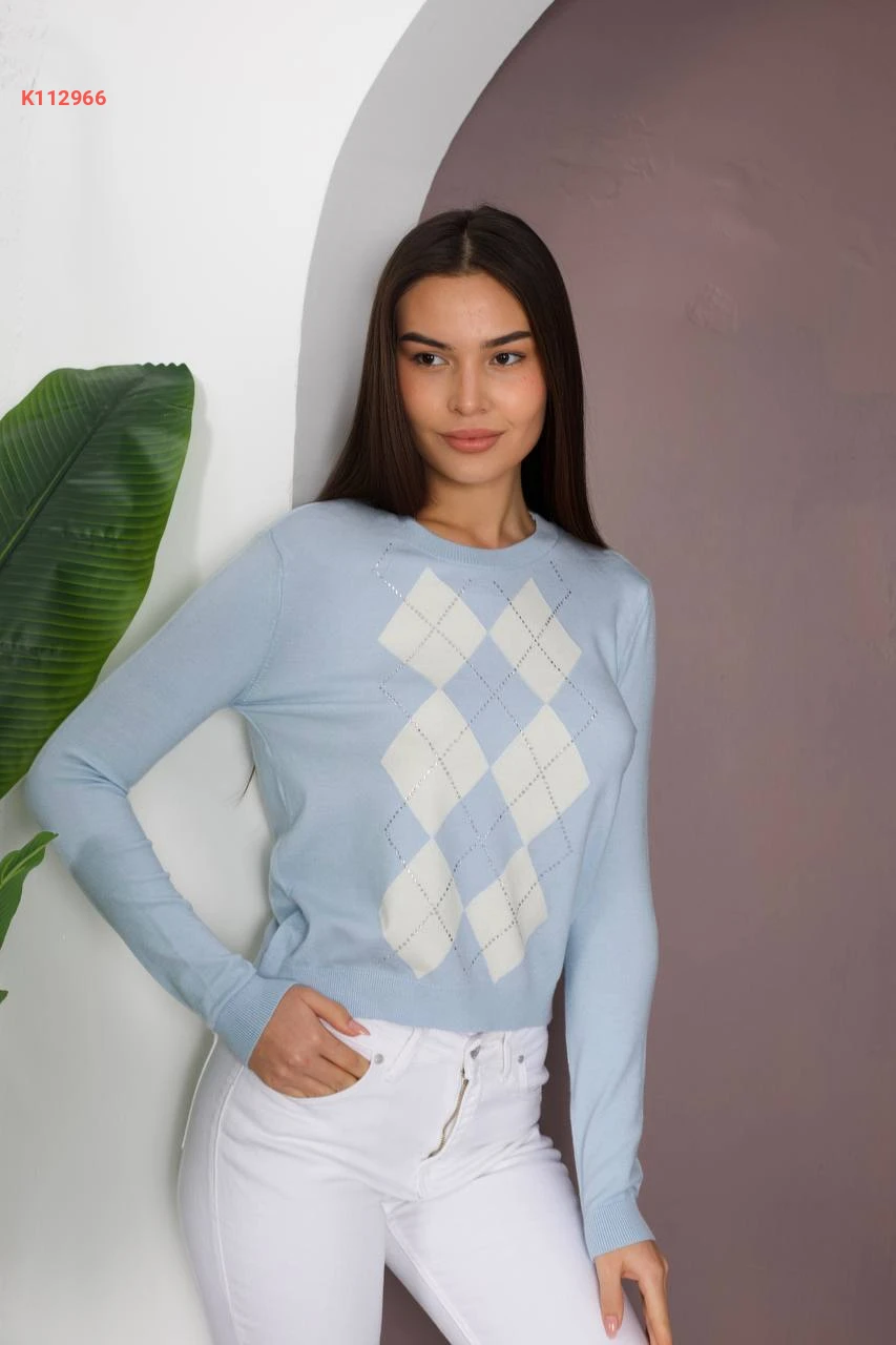 كنزة صوف بياقة دائرية مزين بالستراس مع رسمة مثلث