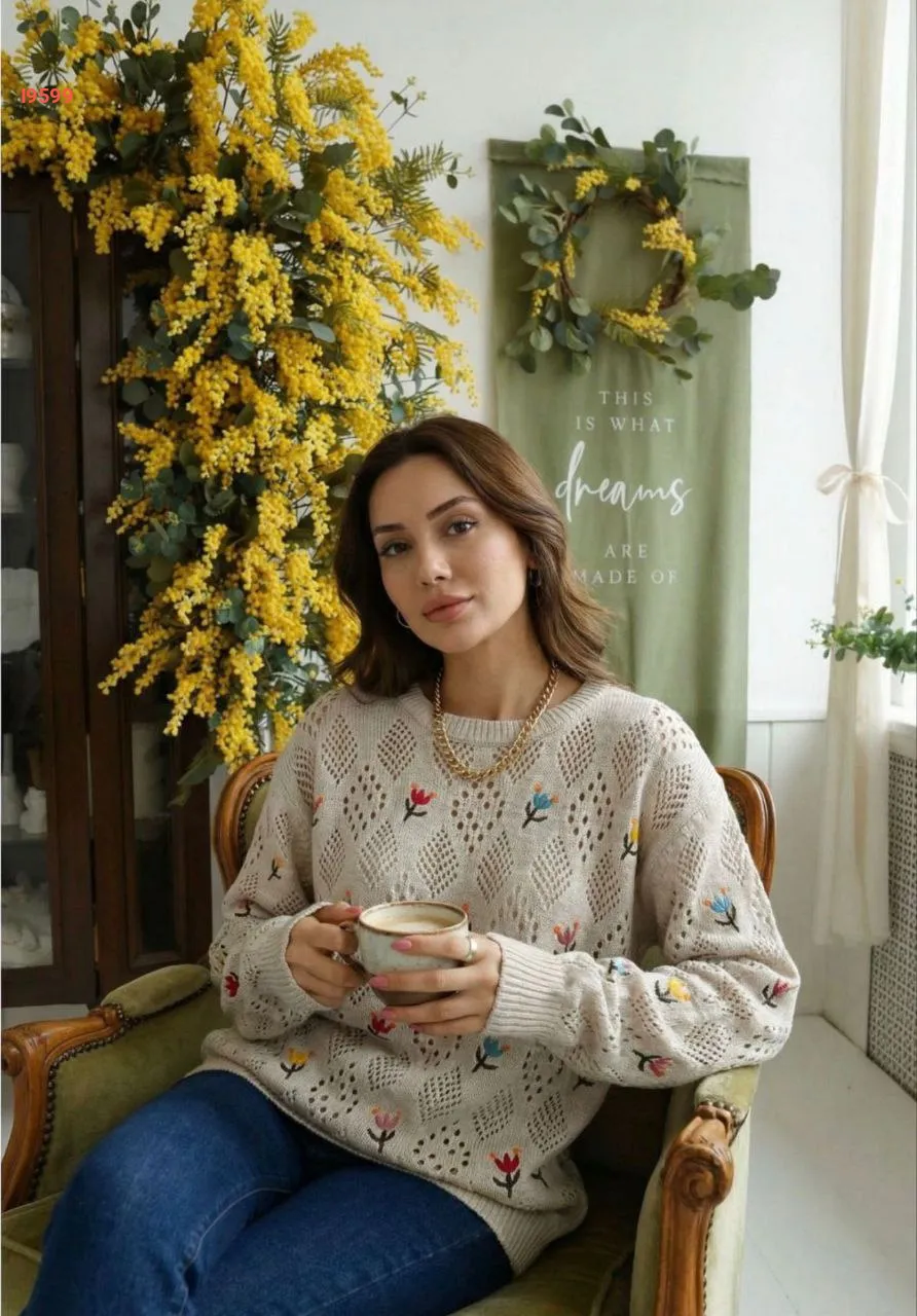 كنزة تريكو مطرزة ورد