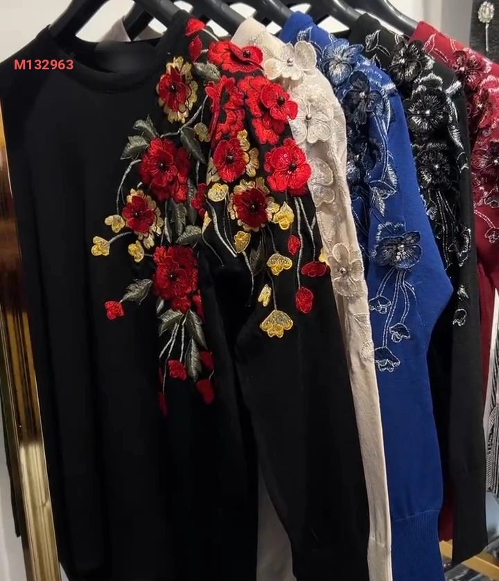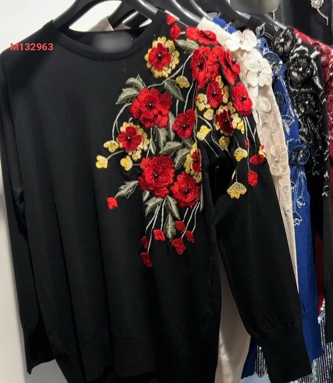 كنزة تريكو مع ورد وتطريز