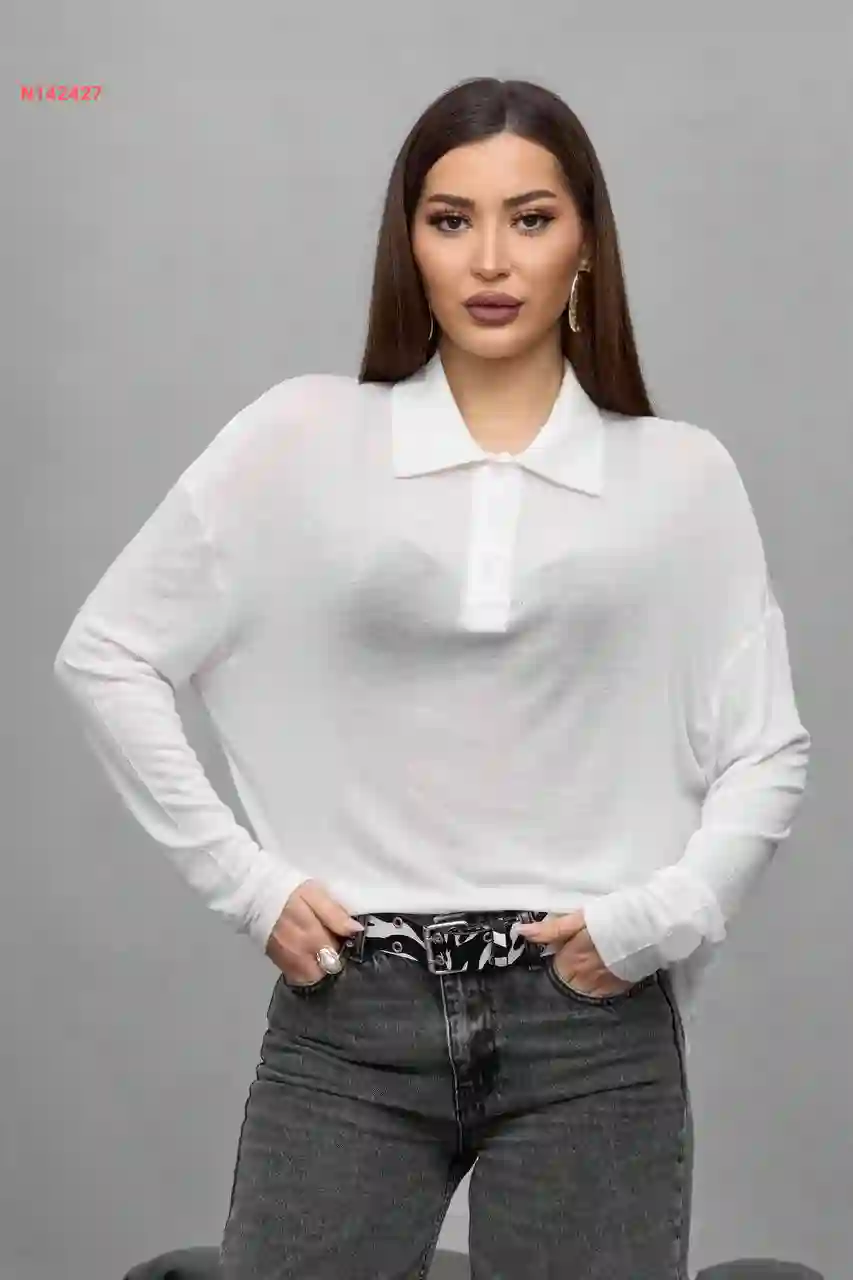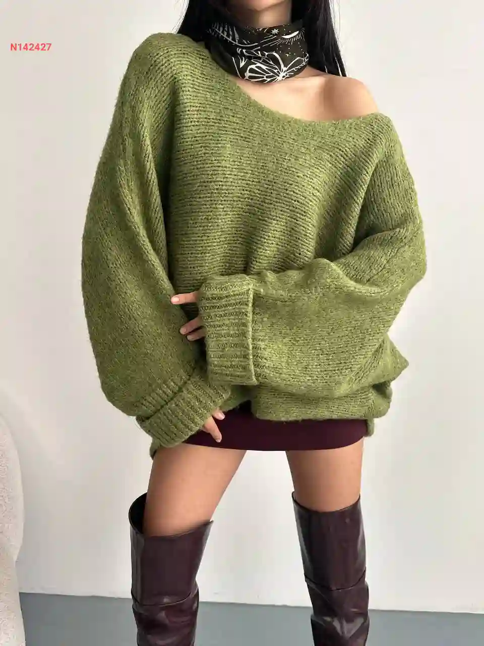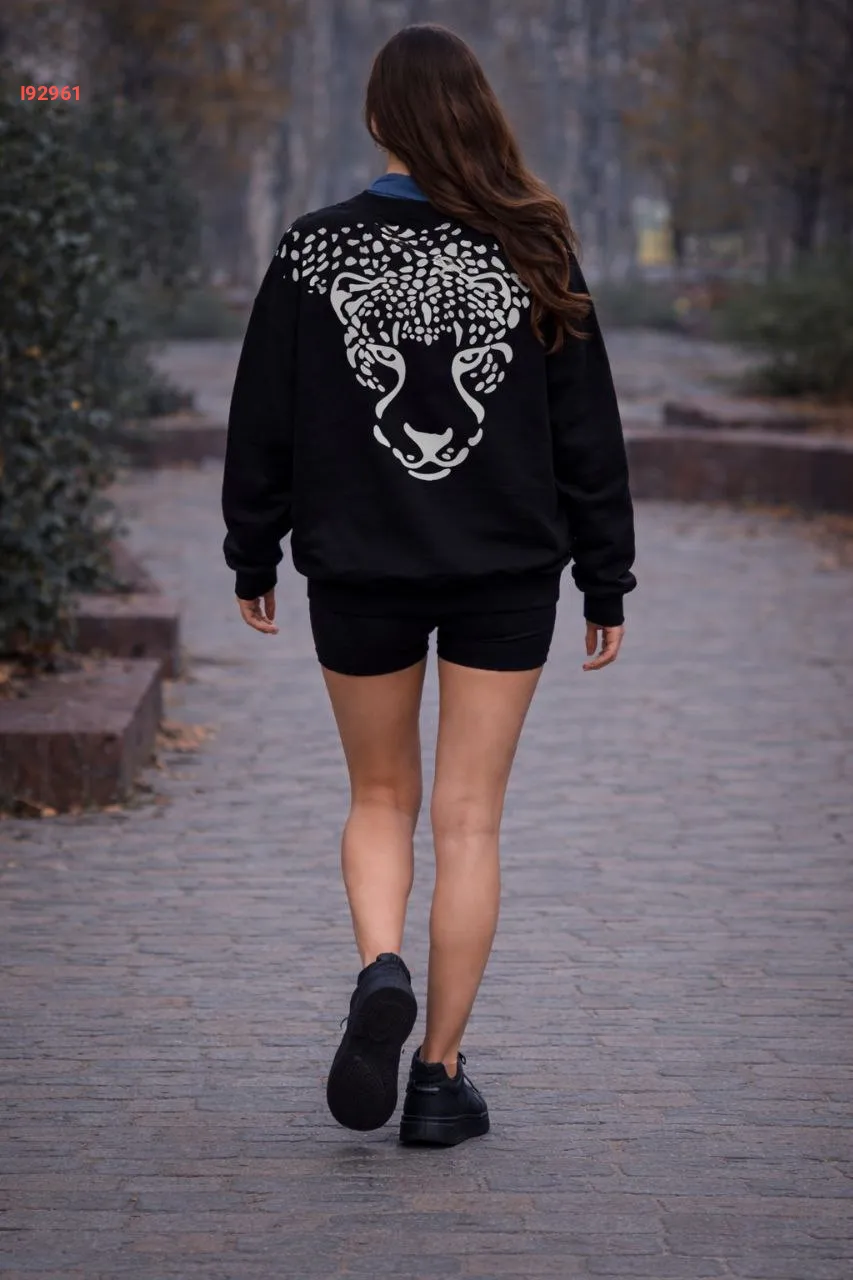 كنزة مع فولار سادة من الإمام، بطبعة نمر على الظهر