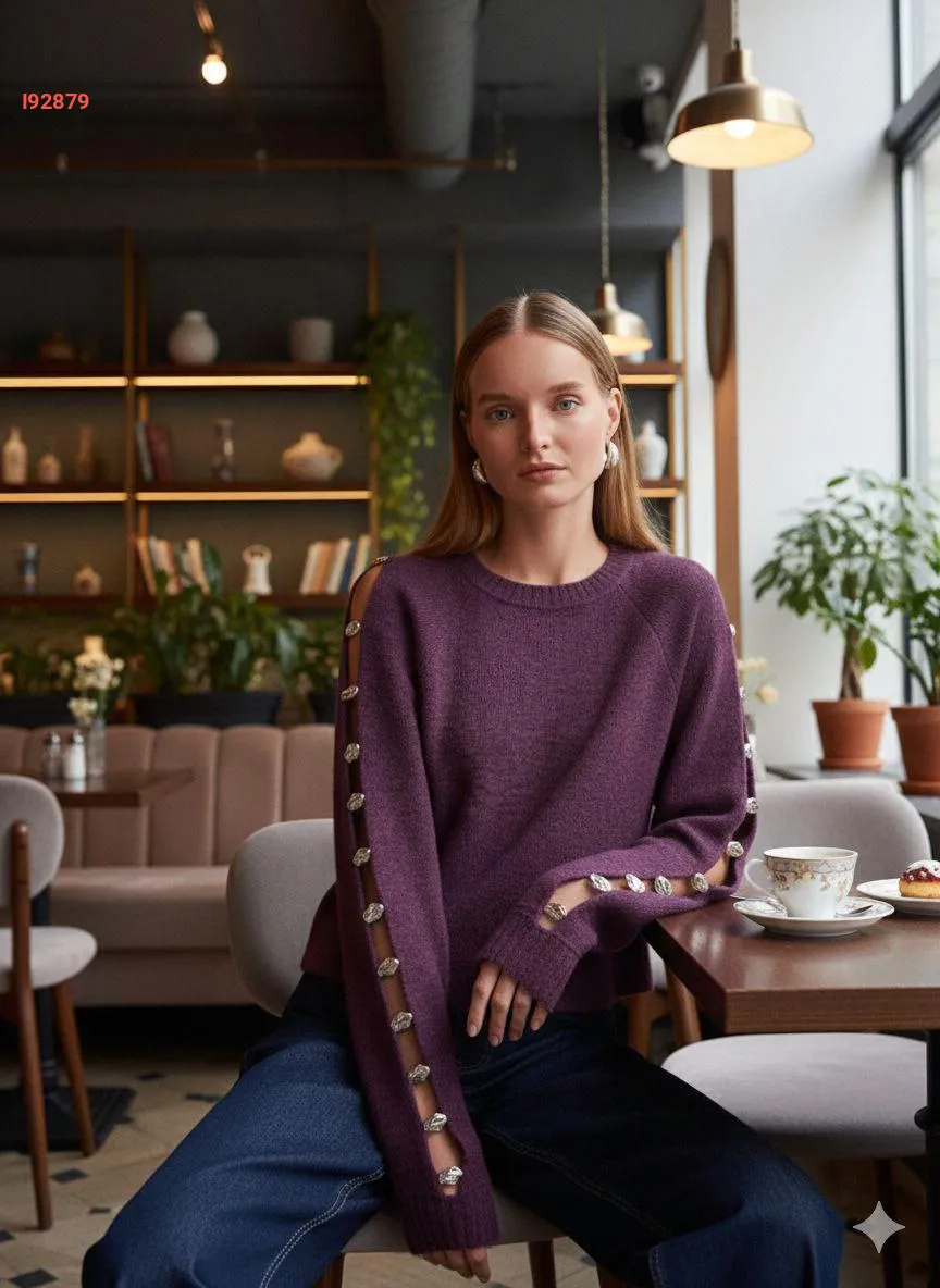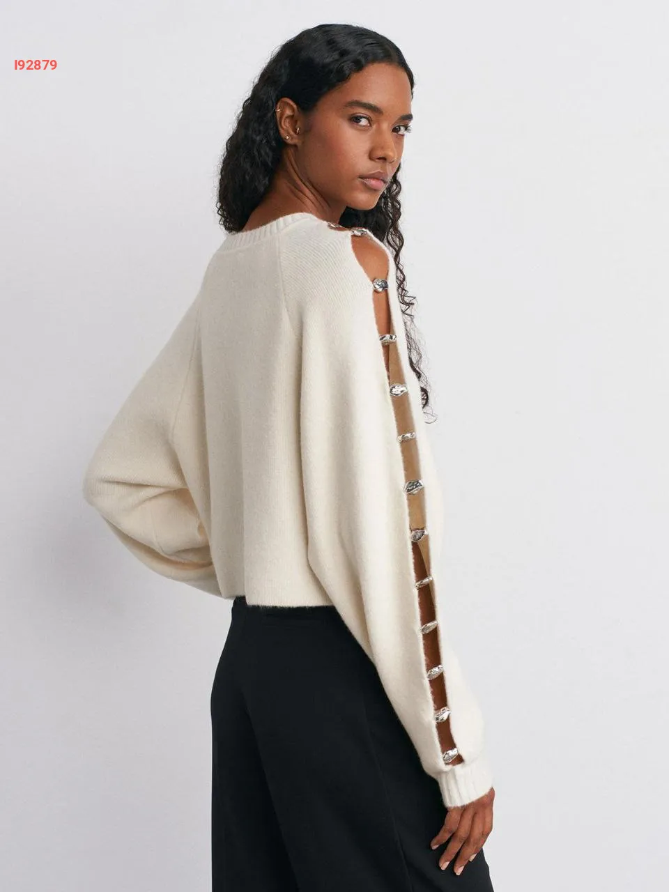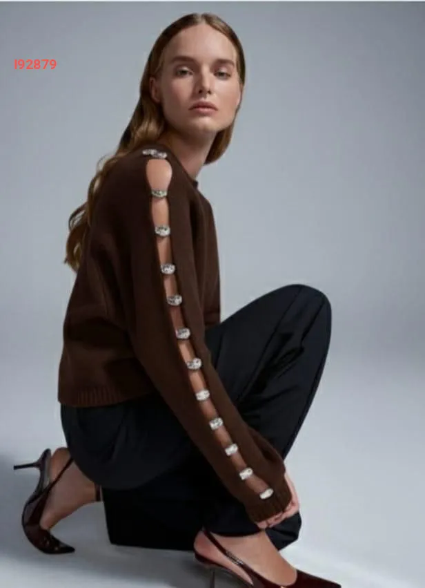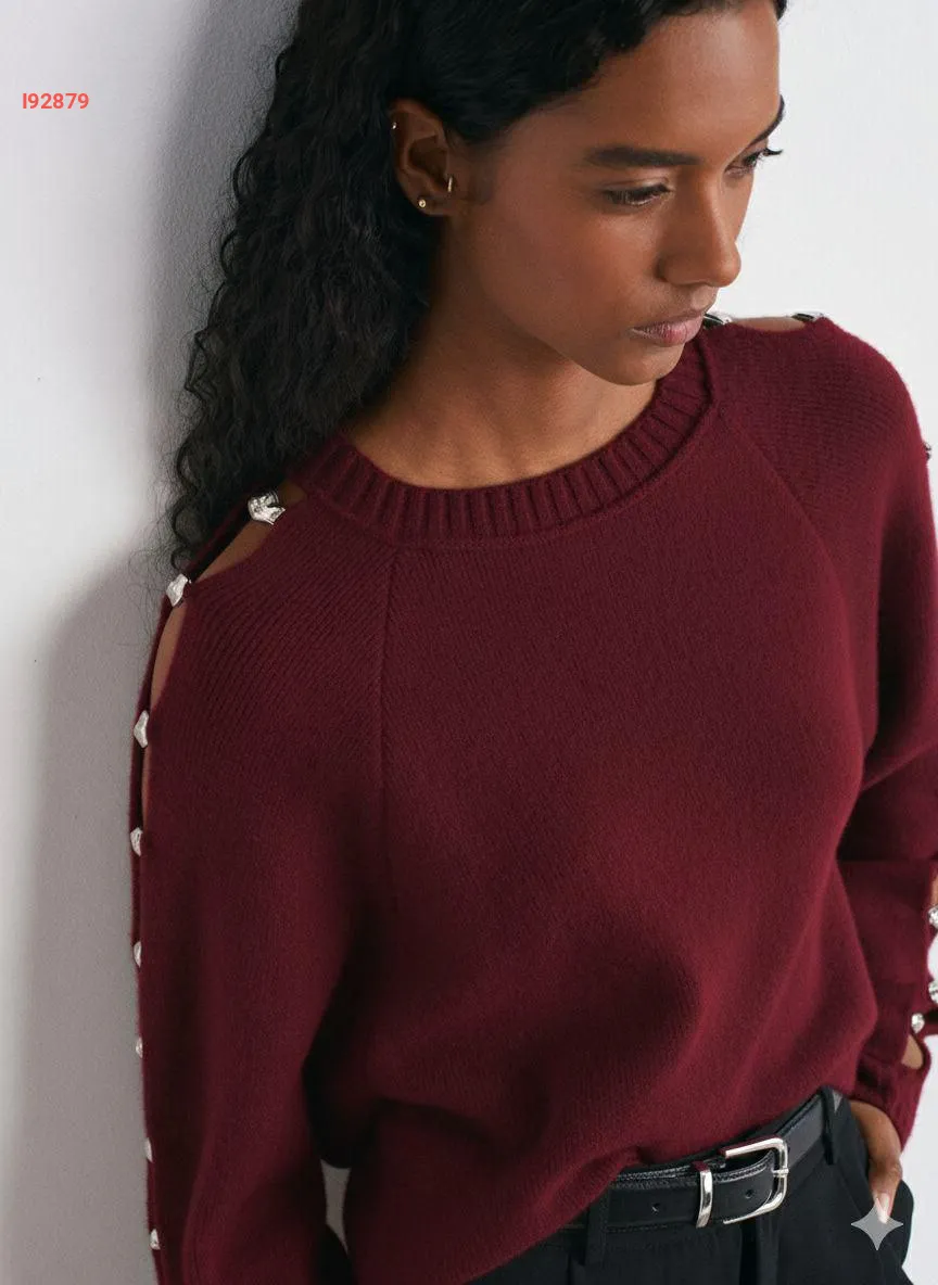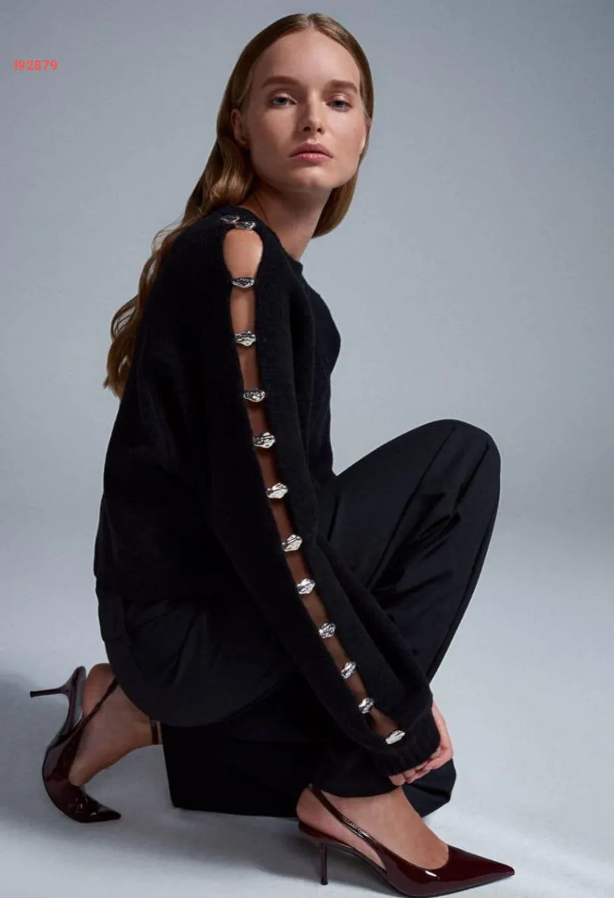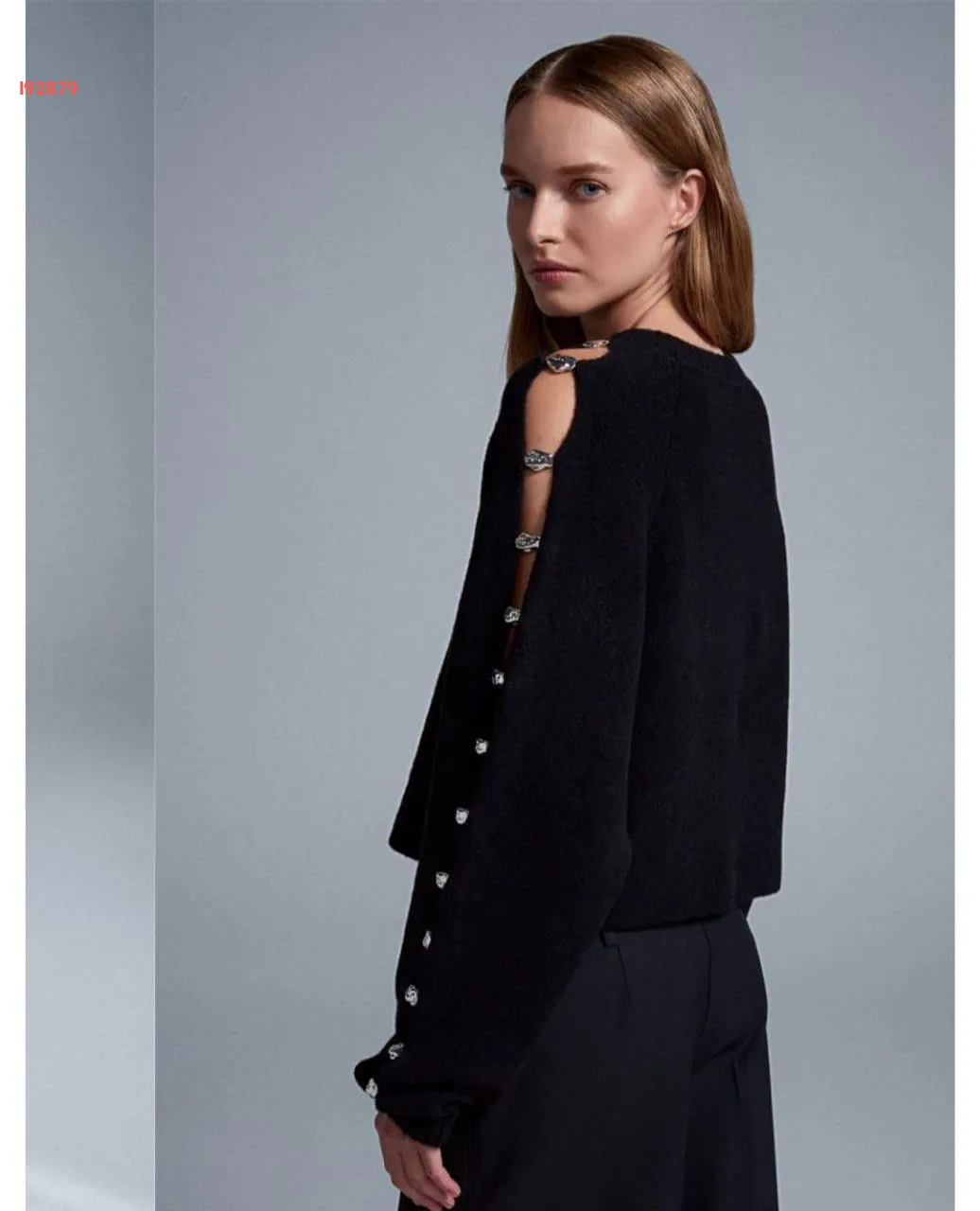 بلوزة تريكو بأكمام مقطعة مع اكسسوار