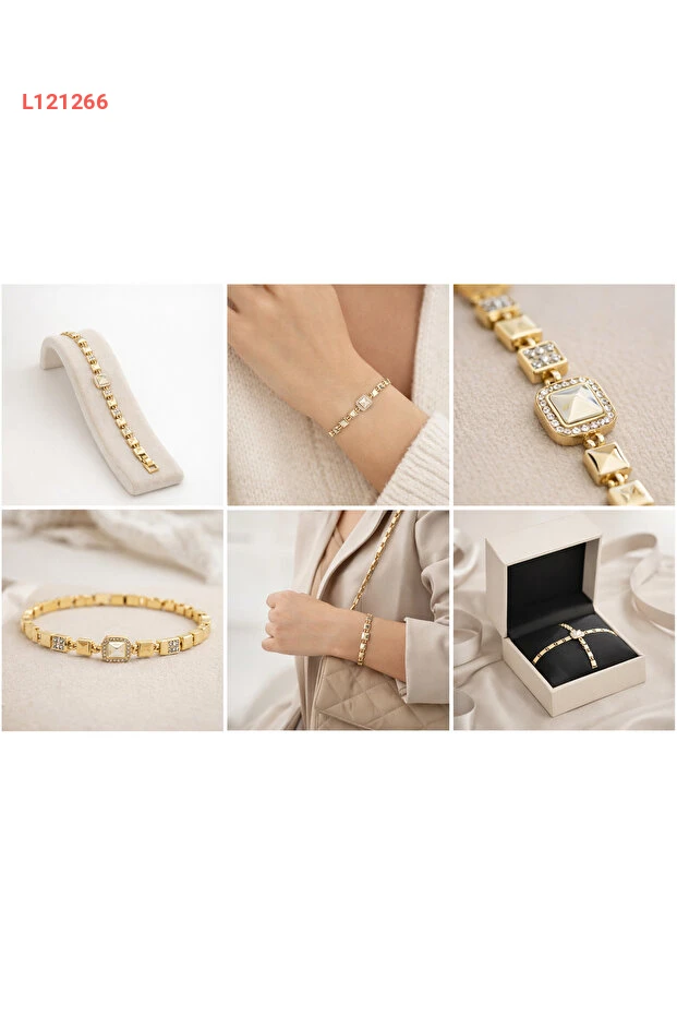 استمتع بإطلالة ساحرة مع سوار TAKII TURKA المصنوع من الفولاذ المقاوم للصدأ 316L، المميز بتصميمه الفريد الذي يجمع بين الأناقة والعصرية. تتميز هذه القطعة بتشطيبة ذهبية رائعة، مزينة بأحجار مربعة براقة، مما يضيف لمسة من الفخامة لأي إطلالة. اجعل كل لحظة مميزة مع هذا السوار الذي يمثل الأناقة والراحة في آن واحد.
