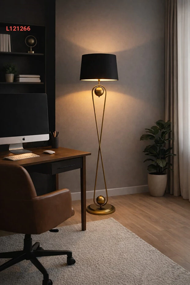 لمسة دلهي الحديثة: لمبة أرضية معدنية ذات قاعدة قديمة وقبعة سوداء للصالون وغرفة النوم