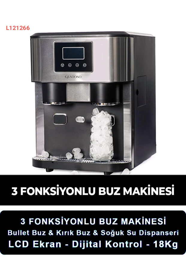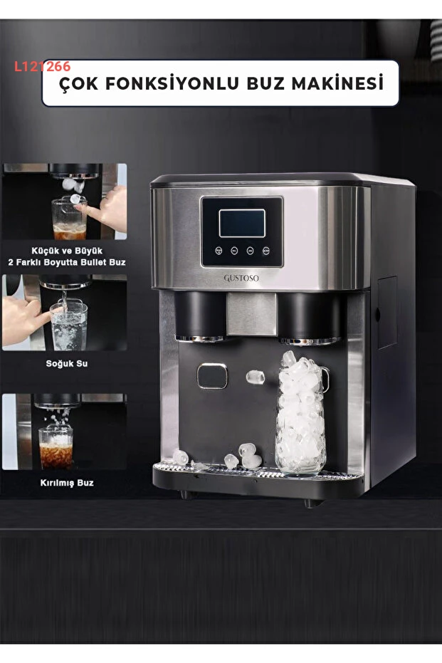جهاز صنع الثلج GUSTOSO 3 في 1 بشاشة لمس LCD مع خزنة للماء البارد وثلج مكسر