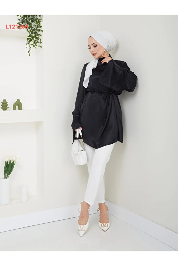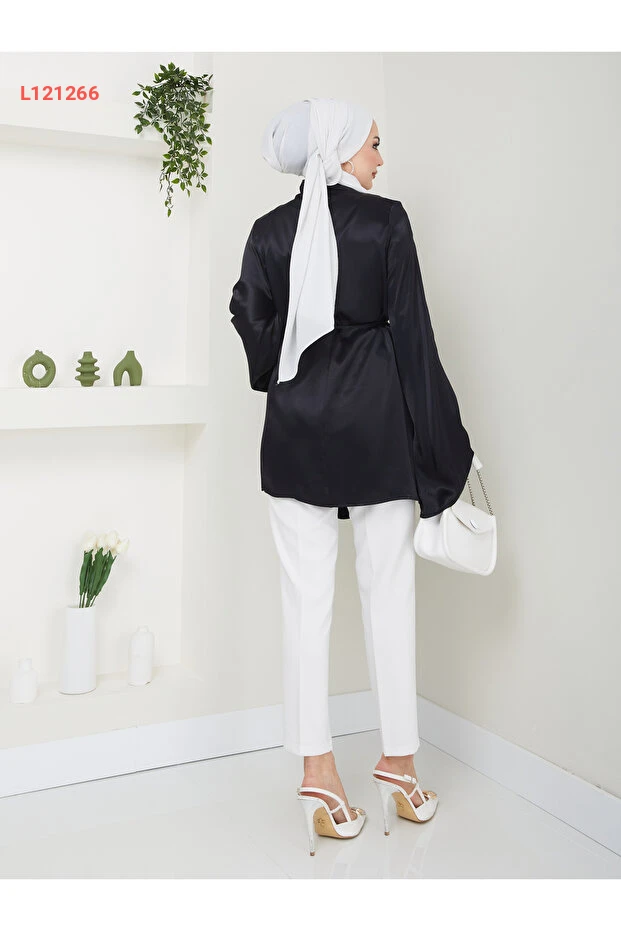 استمتعي بإطلالة أنيقة وعصرية مع بلوزة "Tate Saten" السوداء، المصنوعة من قماش الساتان الفاخر الذي يضمن لك الراحة والنعومة طوال اليوم. تتميز بتصميمها العصري مع أربطة أنيقة تضيف لمسة من الأنوثة، مما يجعلها الخيار المثالي للمناسبات المختلفة أو لإطلالتك اليومية.