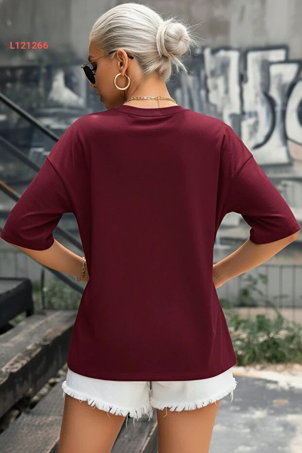 اكتشفي أناقة وراحة مجموعة Teenage Millionaire مع تي شيرت "سالاس" ذو اللون البوردو الجذاب. يتميز بقصة الأوفرسايز وتصميم الياقة المدورة، ما يجعله خيارًا مثاليًا للتألق في إطلالاتك اليومية. اجمعي بين الأسلوب العصري والراحة المطلقة مع هذا القطعة التي تضيف لمسة أنثوية مميزة إلى خزانتك!