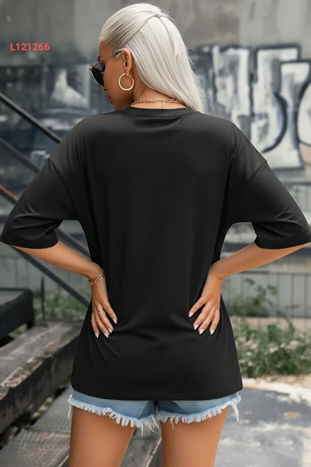 تي شيرت أوفر سايز أسود بياقة دائرية "الحياة الحرة" للنساء من تيناج مليونير