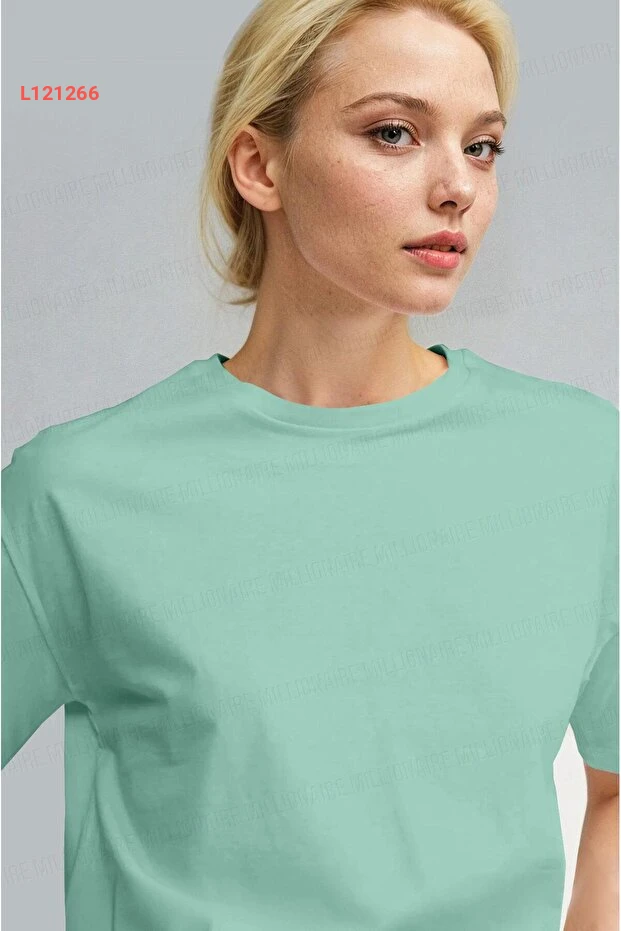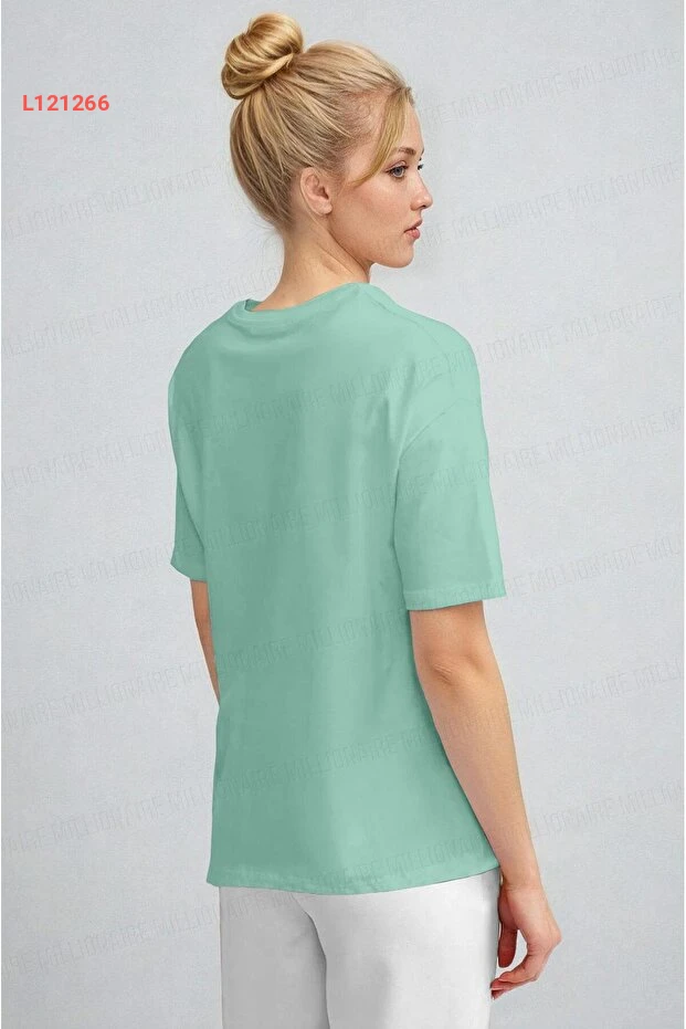 تي شيرت أساسي للنساء بلون أخضر نعناعي بتصميم مريح ونسيج تنفس