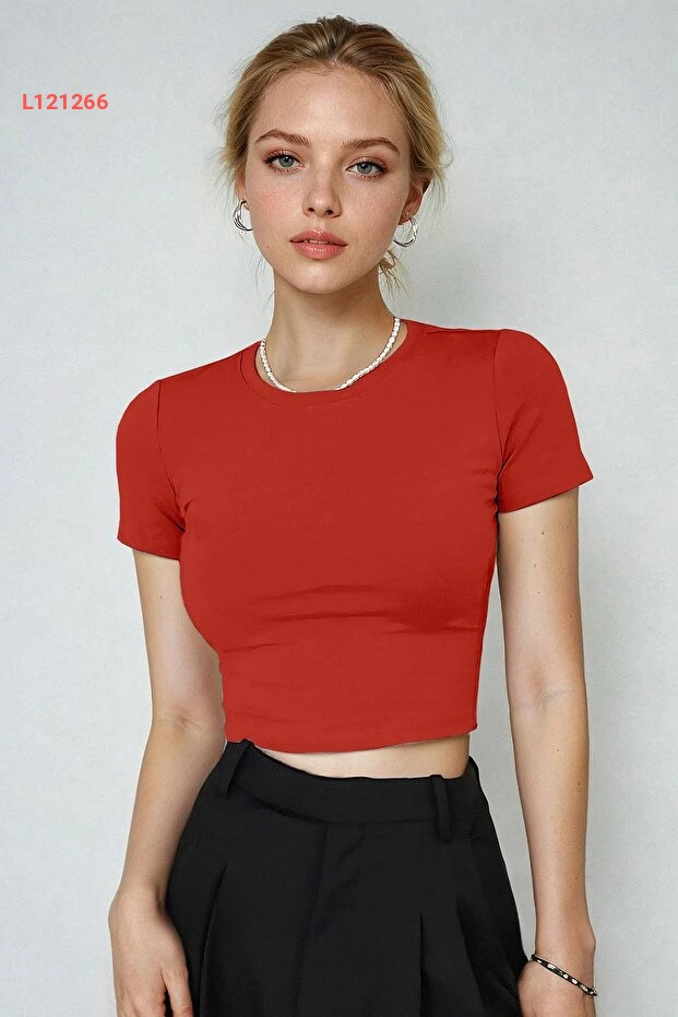 بلوزة كروبت بيدي حمراء ضيقة بأكمام قصيرة للأطفال الأثرياء