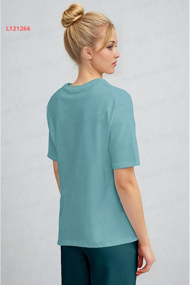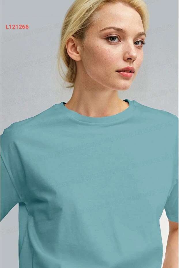 تي شيرت بيزك أساسي نسائي تركوازي بقصة مريحة من تيينج مليونير