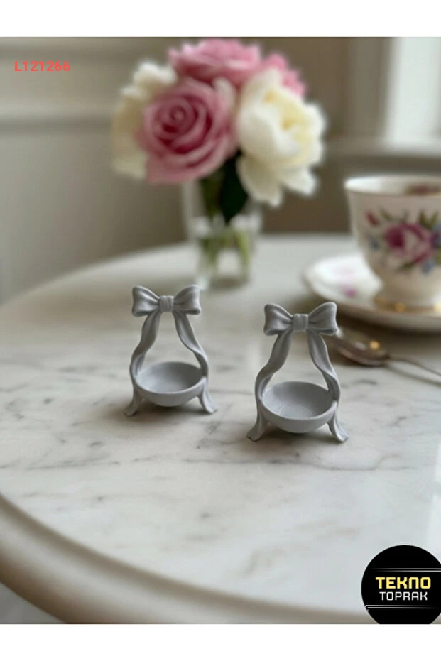 مجموعة تقديم وحلويات فاخرة بتصميم فيونكة من تكماشن (2 قطع)