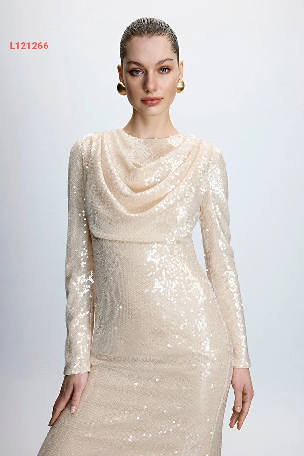 فستان سهرة فاخر مزين بالدانتيل والترتر من ميرسي MS